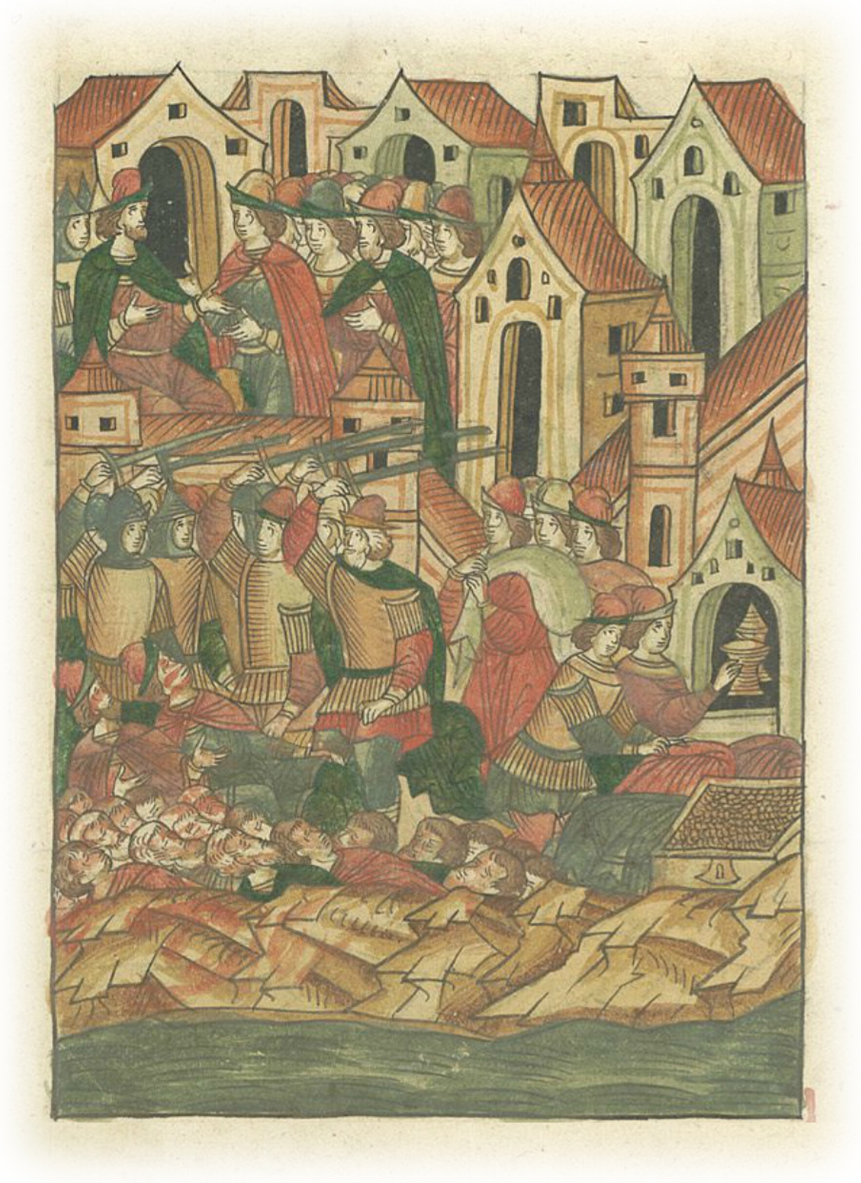 Астраханцы всех их перебили, ни одного не оставили в живых, а имущество их забрали себе. Такую кончину принял воевода Прокофий и другой новгородский воевода смолятич с всею своею дружиной – какую мерою сами они мерили, такой и им отмерилось.