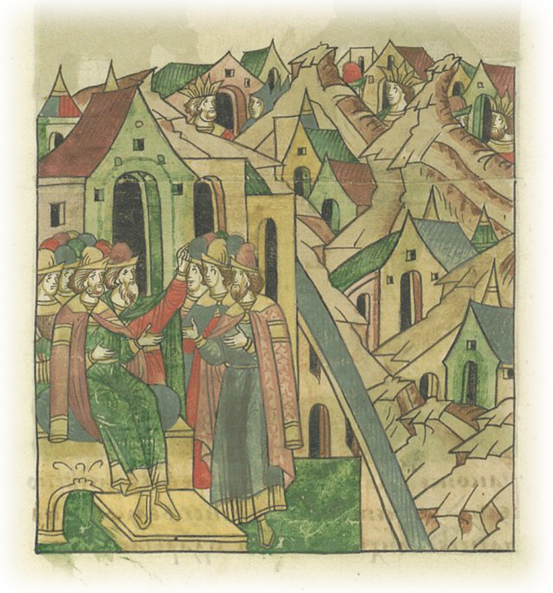 Ругодивские посадники Яким и Захар приезжают в Москву. Воеводы царя Ивана Васильевича Алексей Адашев и Иван Михайлов сообщают им, что государь пожалует их, если сдадут его воеводам помимо Ругодива Вышгород.