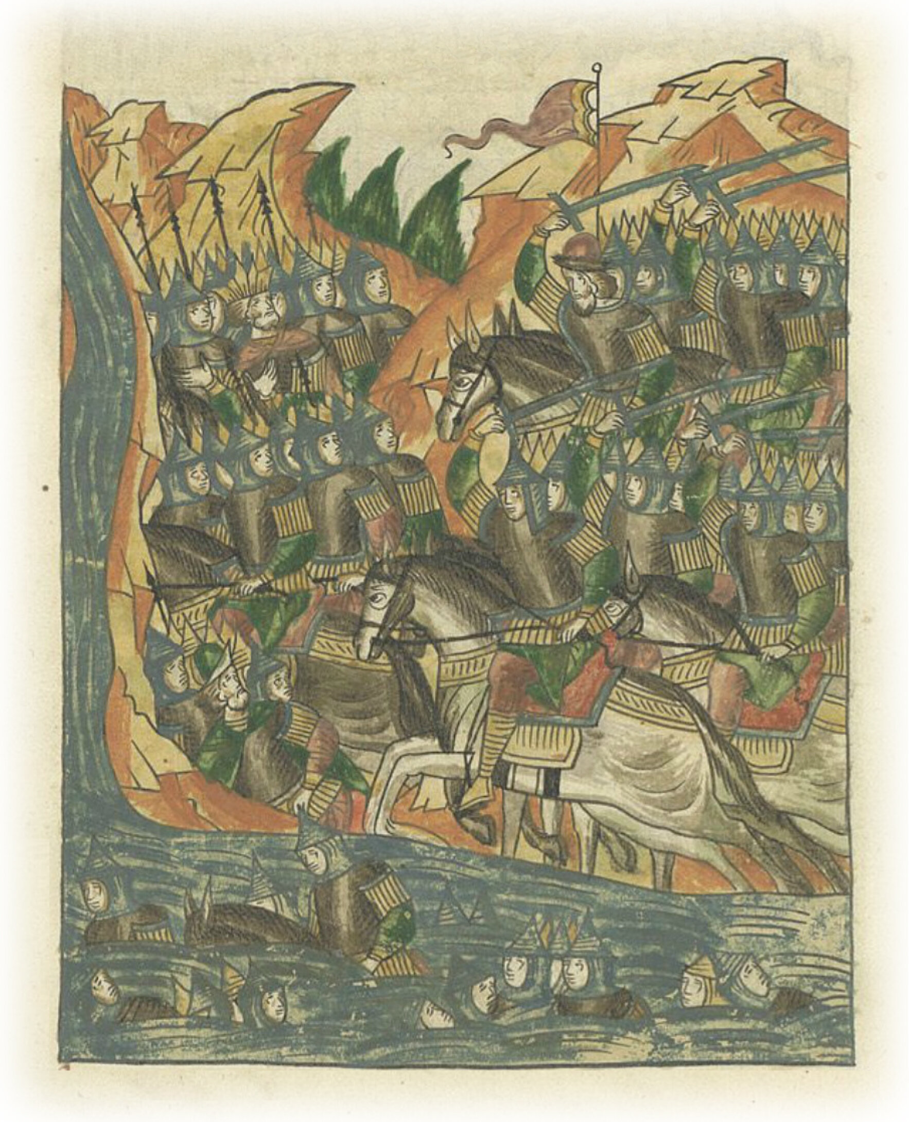 И побежал Мамай с князьями своими и с малой дружиной. И многие татары пали от оружия христианского воинства, пособием Божией Матери и великого чудотворца Петра, а другие в реке утонули. И гнали их до реки до Мечи.