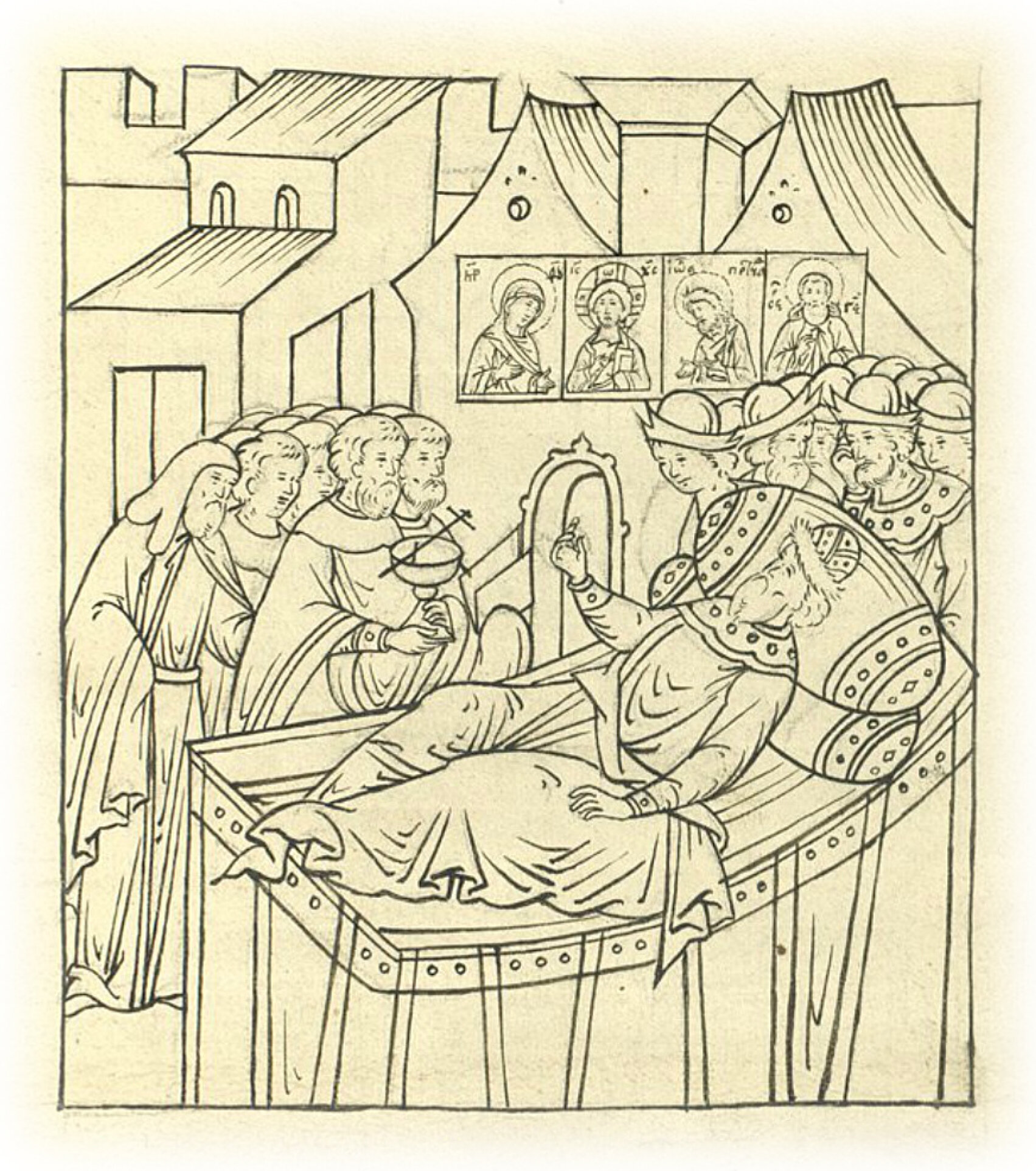 Великий князь Василий Иванович велит принести святое причастие и молится.