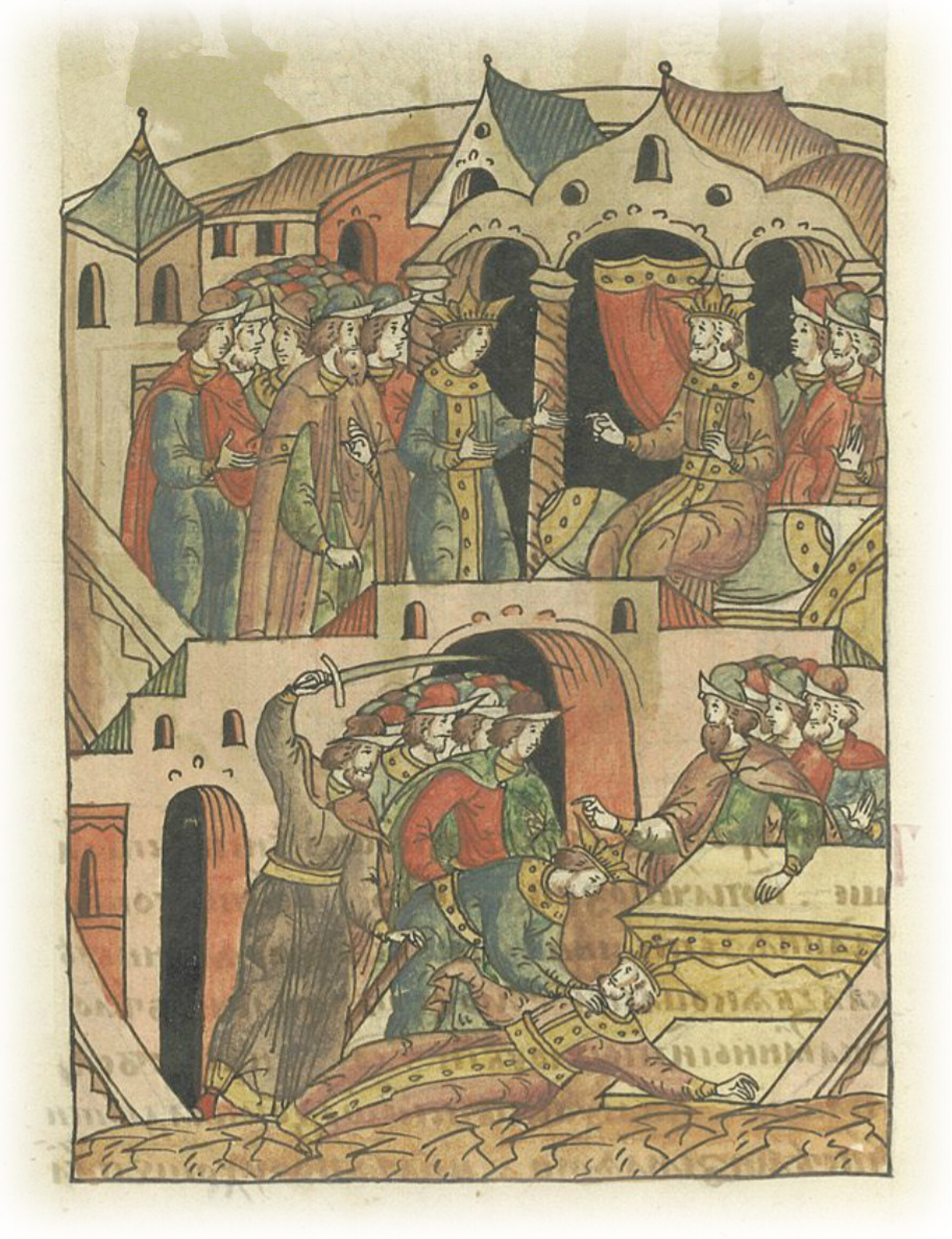 Царевич Бердибек убивает своего отца, Ордынского царя Джанибека, по наставлению темника Тавлубия.