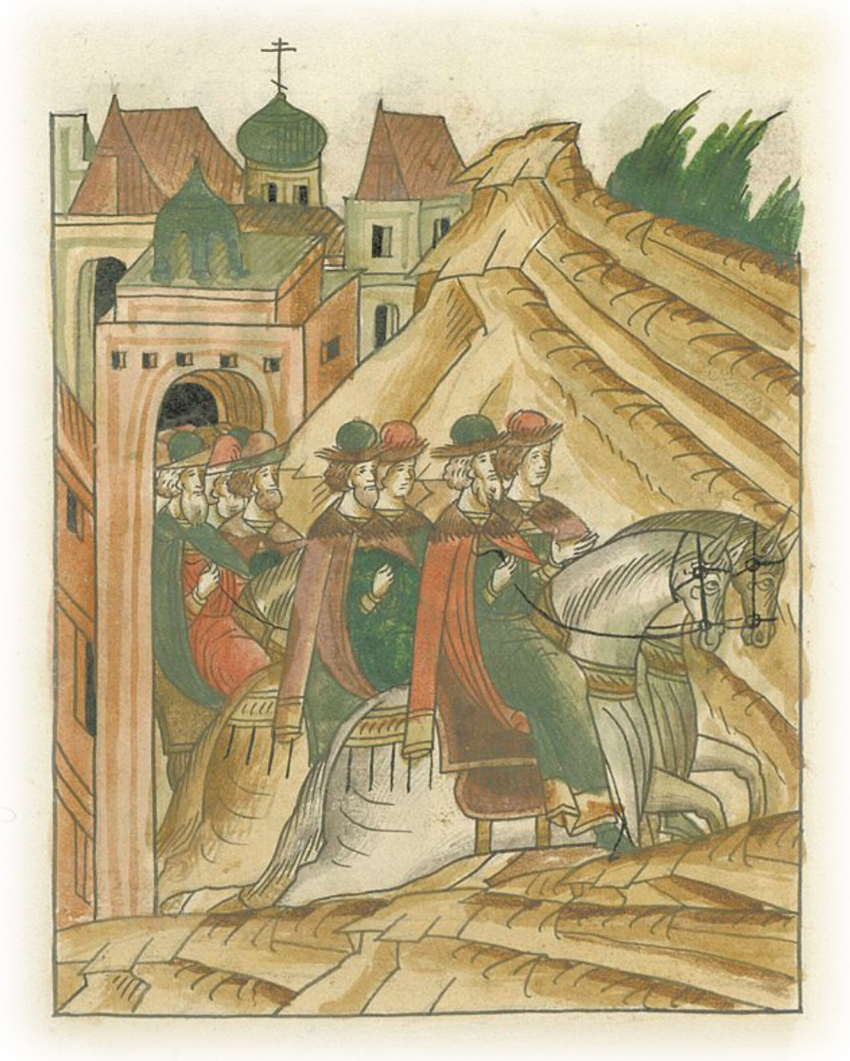 Великий князь Иван Васильевич с сыном великим князем Василием Ивановича и детьми выезжает из Москвы.