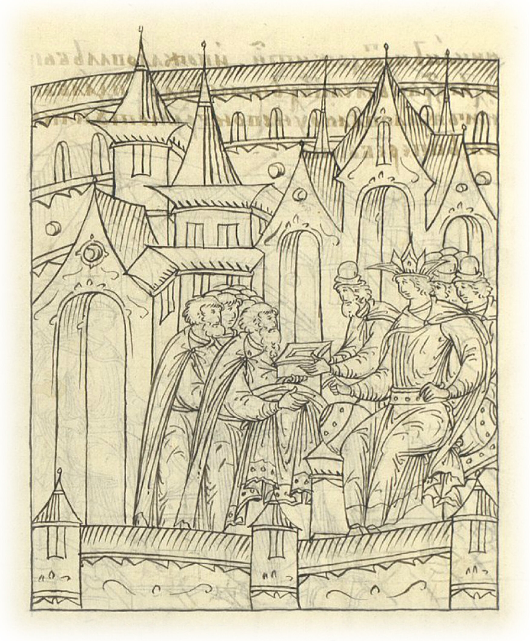 Ругодивские посадники Яким и Захар приезжают в Москву. Воеводы царя Ивана Васильевича Алексей Адашев и Иван Михайлов сообщают им, что государь пожалует их, если сдадут его воеводам помимо Ругодива Вышгород.