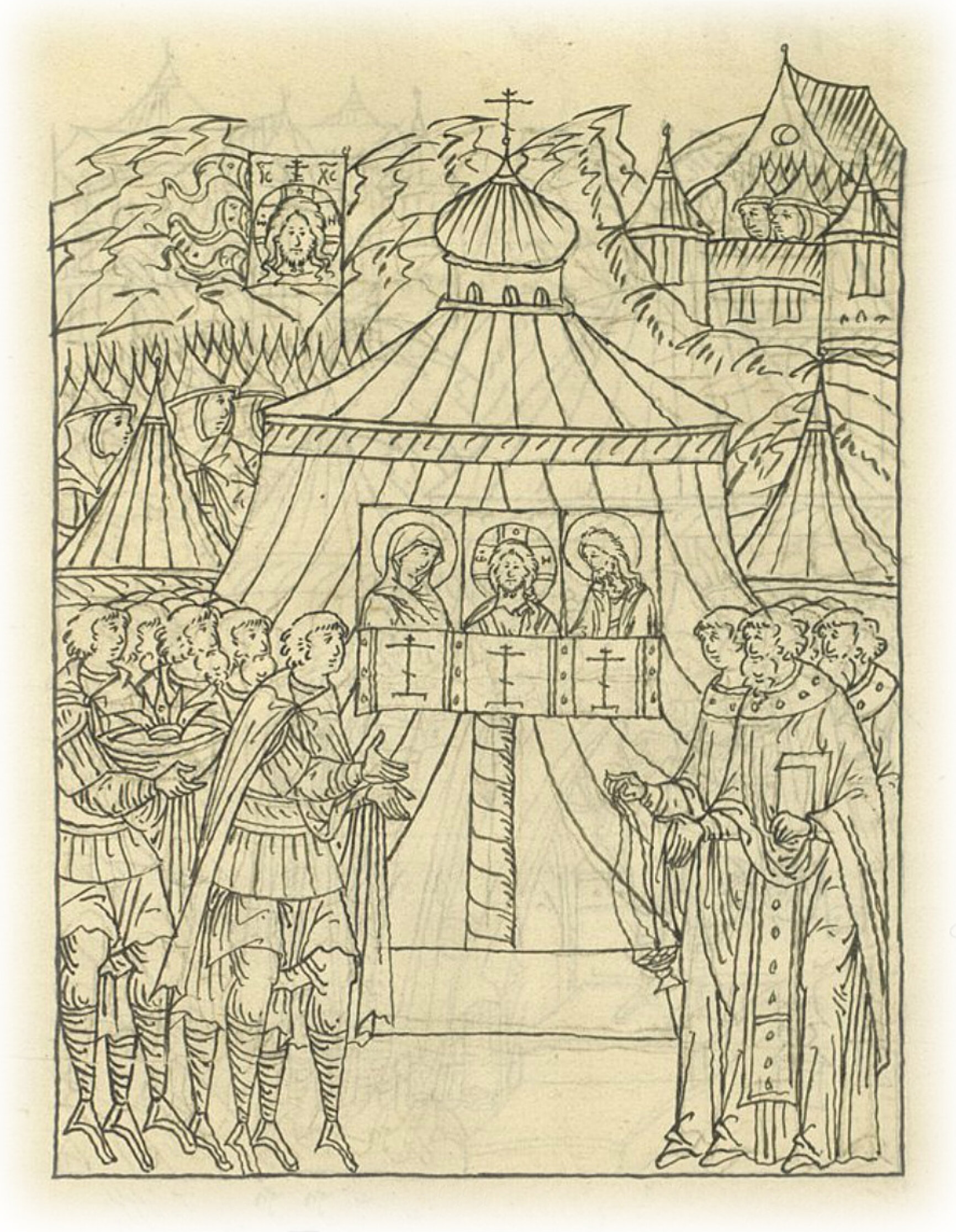 Государь же, Богом избранный, пришел в церковь, много молитв со слезами изрек втайне и явственно вещает: «Что воздам Тебе, Владыко, за Твое благодарение, только слезы и сердце сокрушенное? Милостивый Владыка Христос! Подай совершенное избавление бедному христианству; не нам, Господи, не нам, но имени Твоему дай славу».