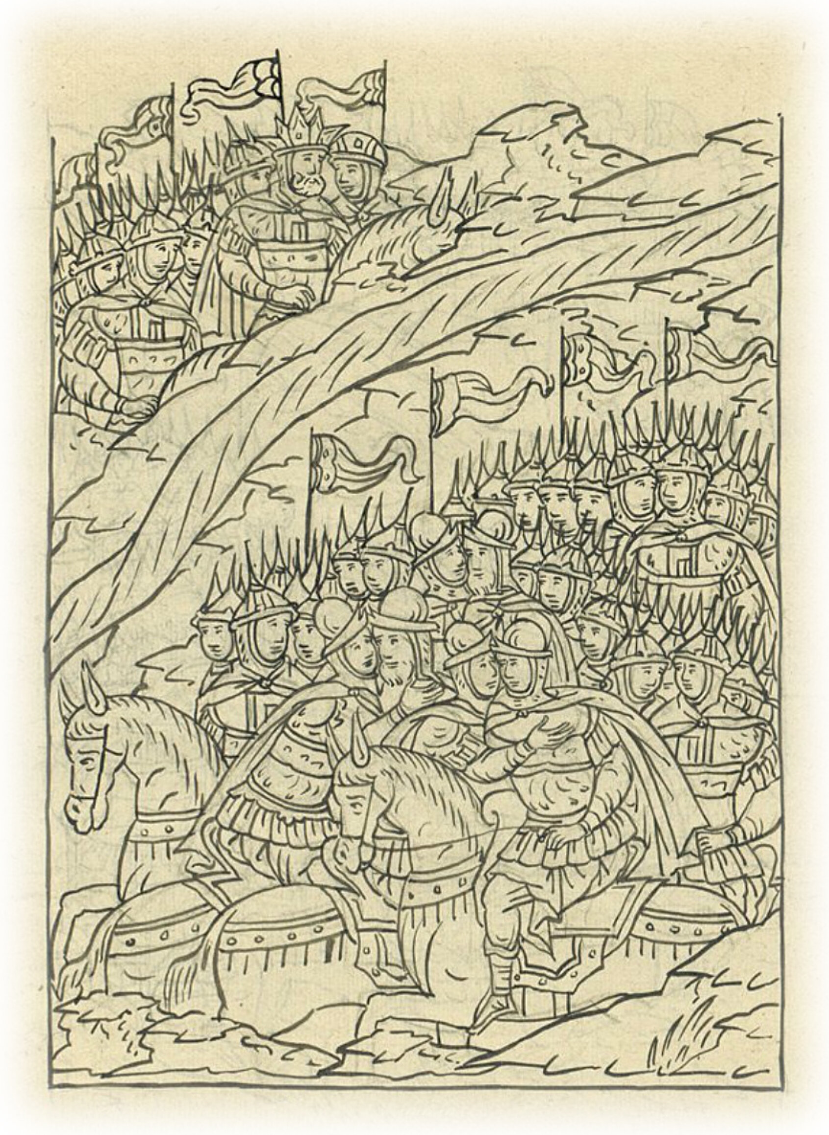 Воеводы царя Ивана Васильевича, разделившись, идут в погоню за царем Емгурчеем.