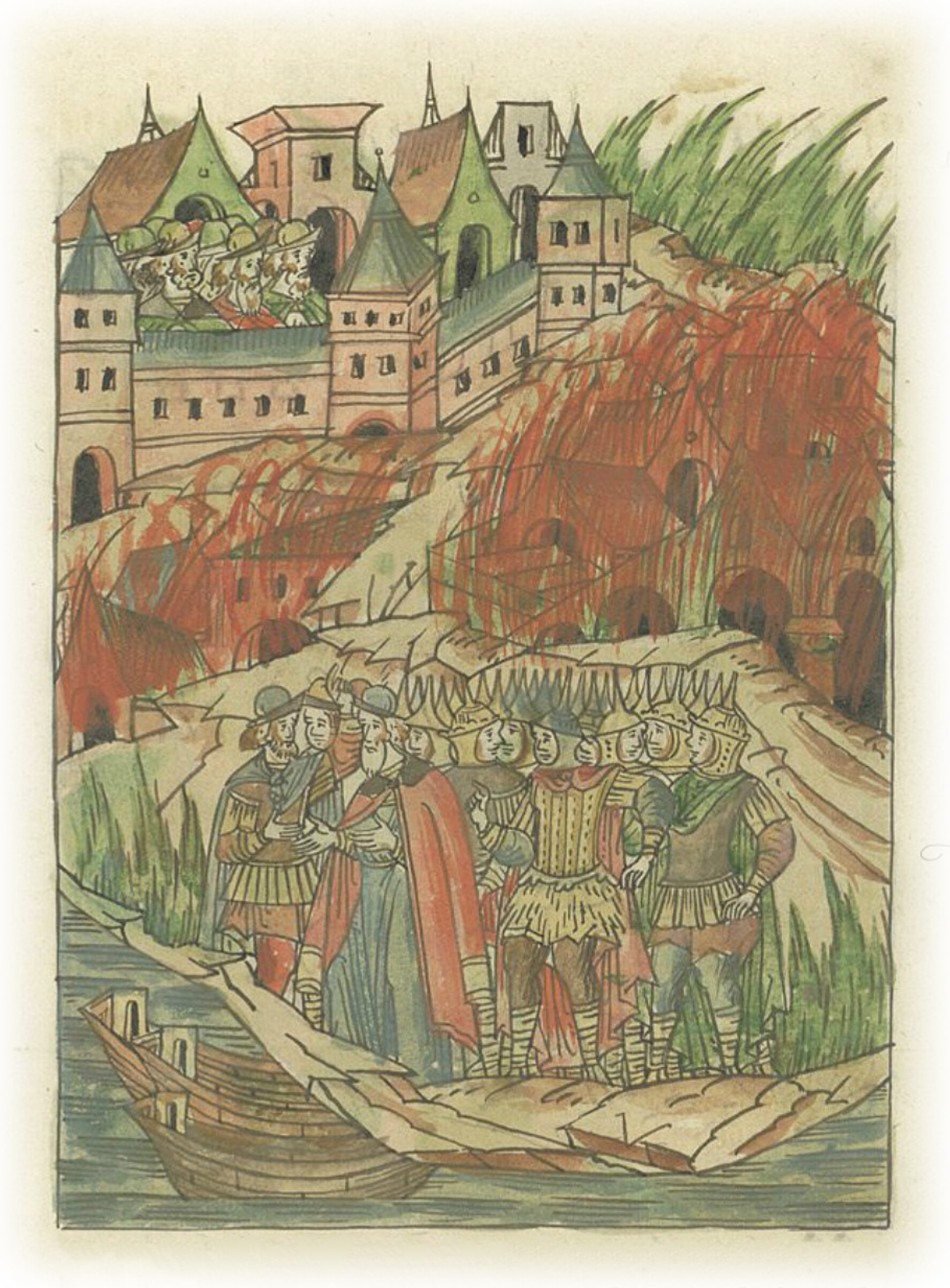 Когда же посады сгорели, рать отступила от города, очень усталая,