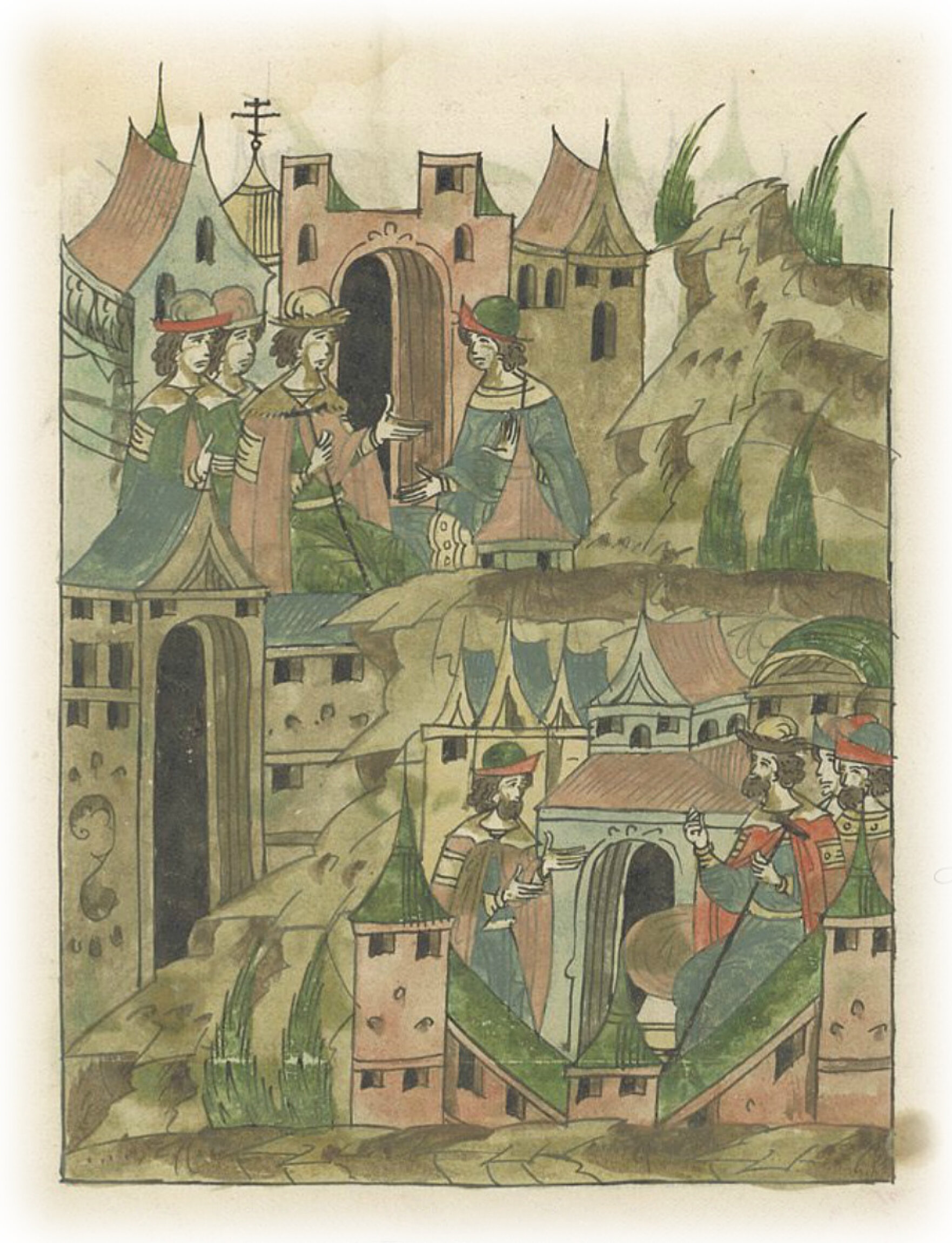 Ругодивские посадники Яким и Захар приезжают в Москву. Воеводы царя Ивана Васильевича Алексей Адашев и Иван Михайлов сообщают им, что государь пожалует их, если сдадут его воеводам помимо Ругодива Вышгород.