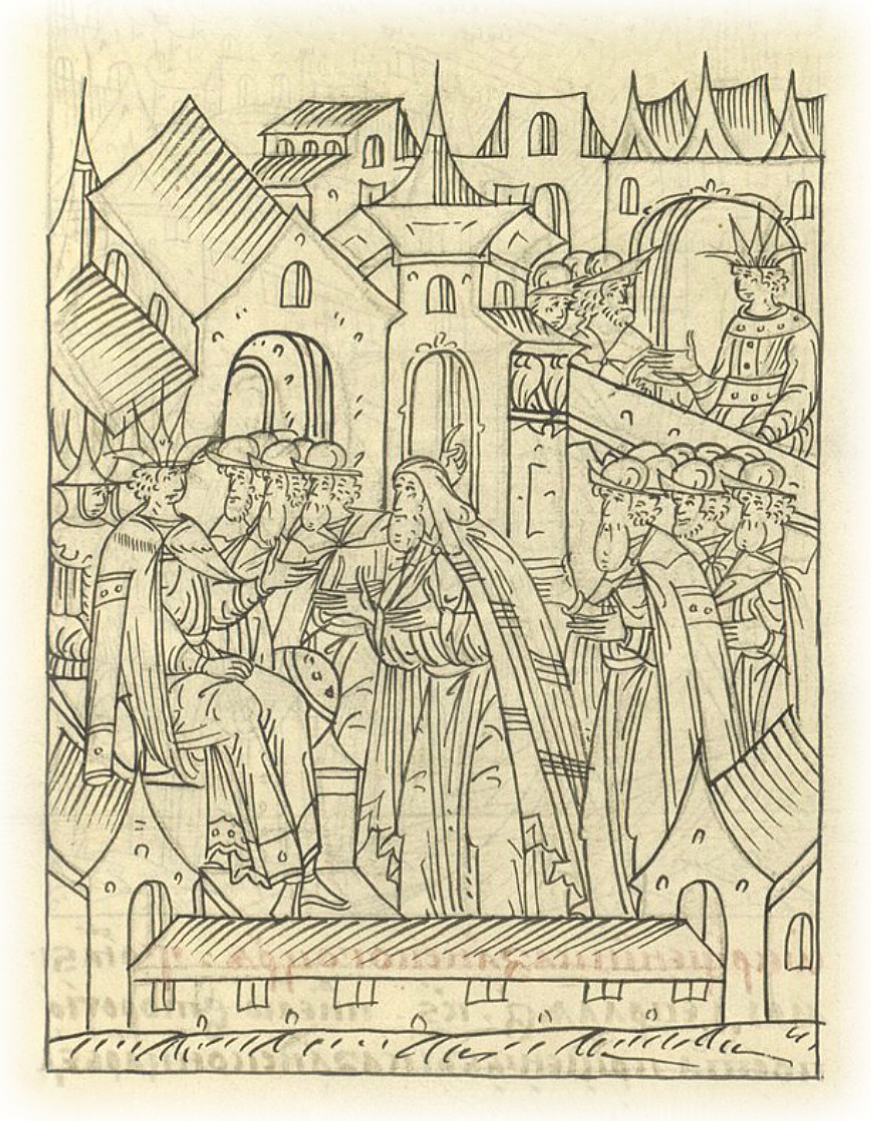 Ругодивские посадники Яким и Захар приезжают в Москву. Воеводы царя Ивана Васильевича Алексей Адашев и Иван Михайлов сообщают им, что государь пожалует их, если сдадут его воеводам помимо Ругодива Вышгород.