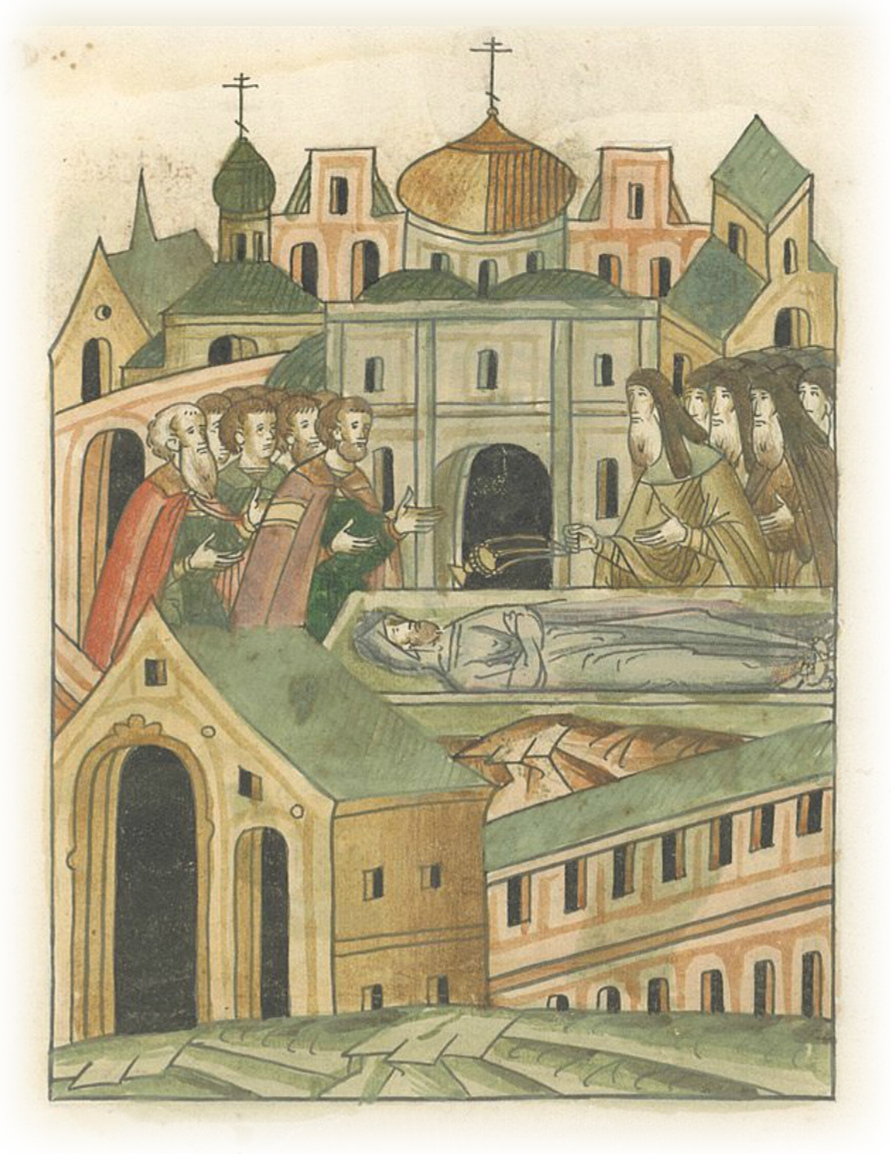 Похороны князя Ивана Борисовича в церкви Пречистой Богородицы в Иосифове монастыре.
