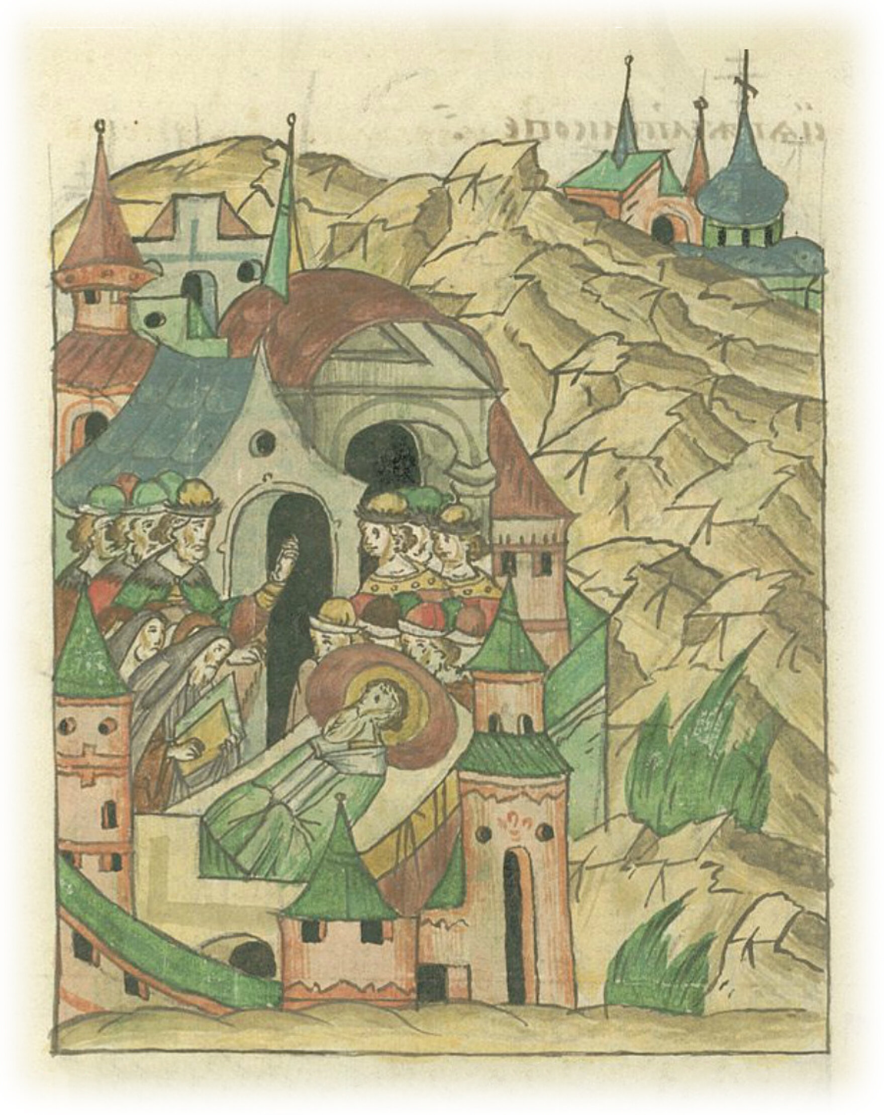 В ту же ночь в полтретьего часа месяца марта во 2 день, накануне субботы, ушел он из этой жизни и предал свой дух Господу. Много слышалось плача и стонов, но никто не мог ему помочь, кроме его добрых дел. Великий князь Иван Михайлович Тверской со своими братьями, боярами и всем народом решили похоронить его тело в основанном епископом монастыре святых отцов Антония и Феодосия в Желтикове.