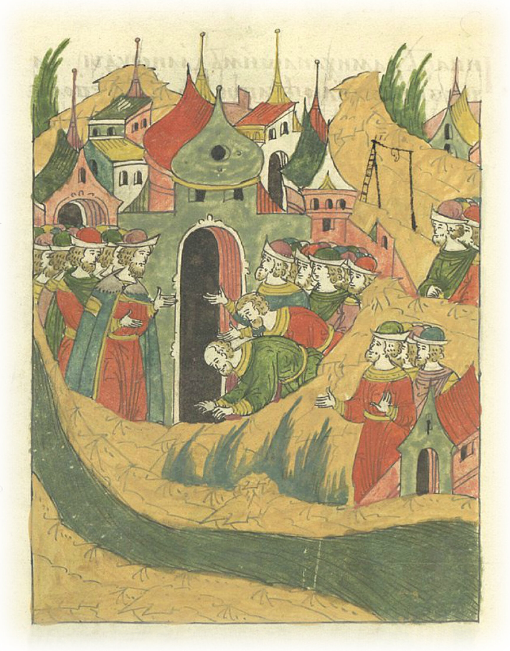 И черные люди астраханцы приходят к Ивану и Михаилу, бьют челом и клятву дают царю и государю, чтобы их государь пожаловал, велел жить по-старому у города Астрахани и дань платить, и вину бы им государь простил, не велел их казнить: они-де – черные люди, водил их царь и князья неволей,