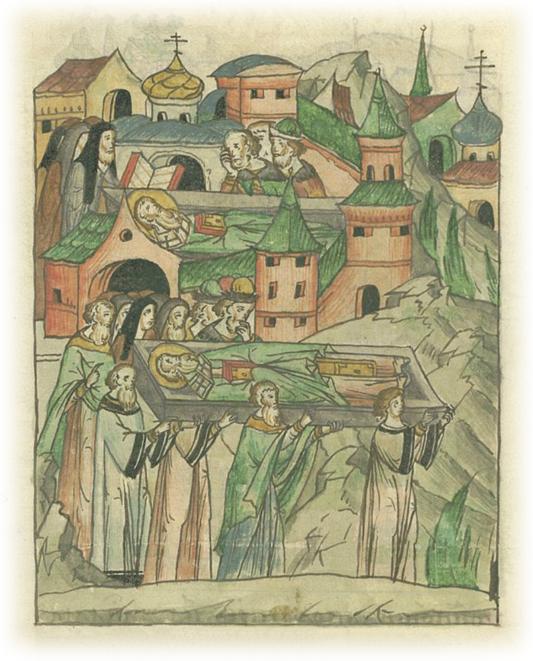 И пели над его телом надгробные песнопения в соборной церкви святого Преображения Господня, проводили его тело с почестями в созданный им монастырь в церковь Пречистой Богородицы в Желтикове на реке Тмаке.