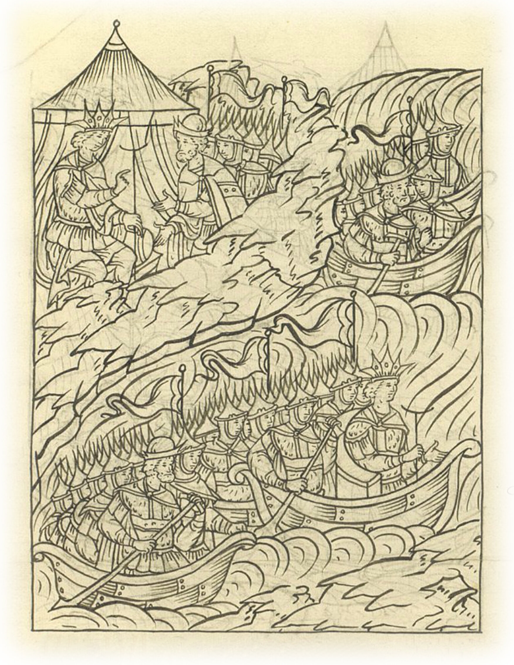 Царь Иван Васильевич едет за Волгу, а сторожевому полку и полку левой руки велит переправляться выше себя.
