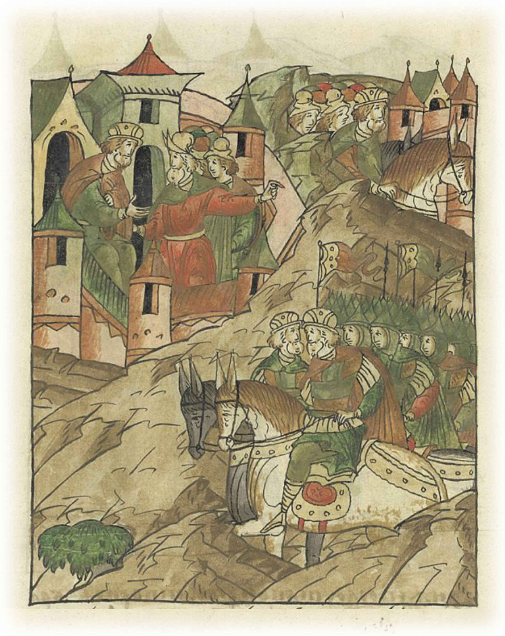 Бояре же его начали ему молвить: «Брат твой, когда шел во Владимир, тебя выдал, отвори град».