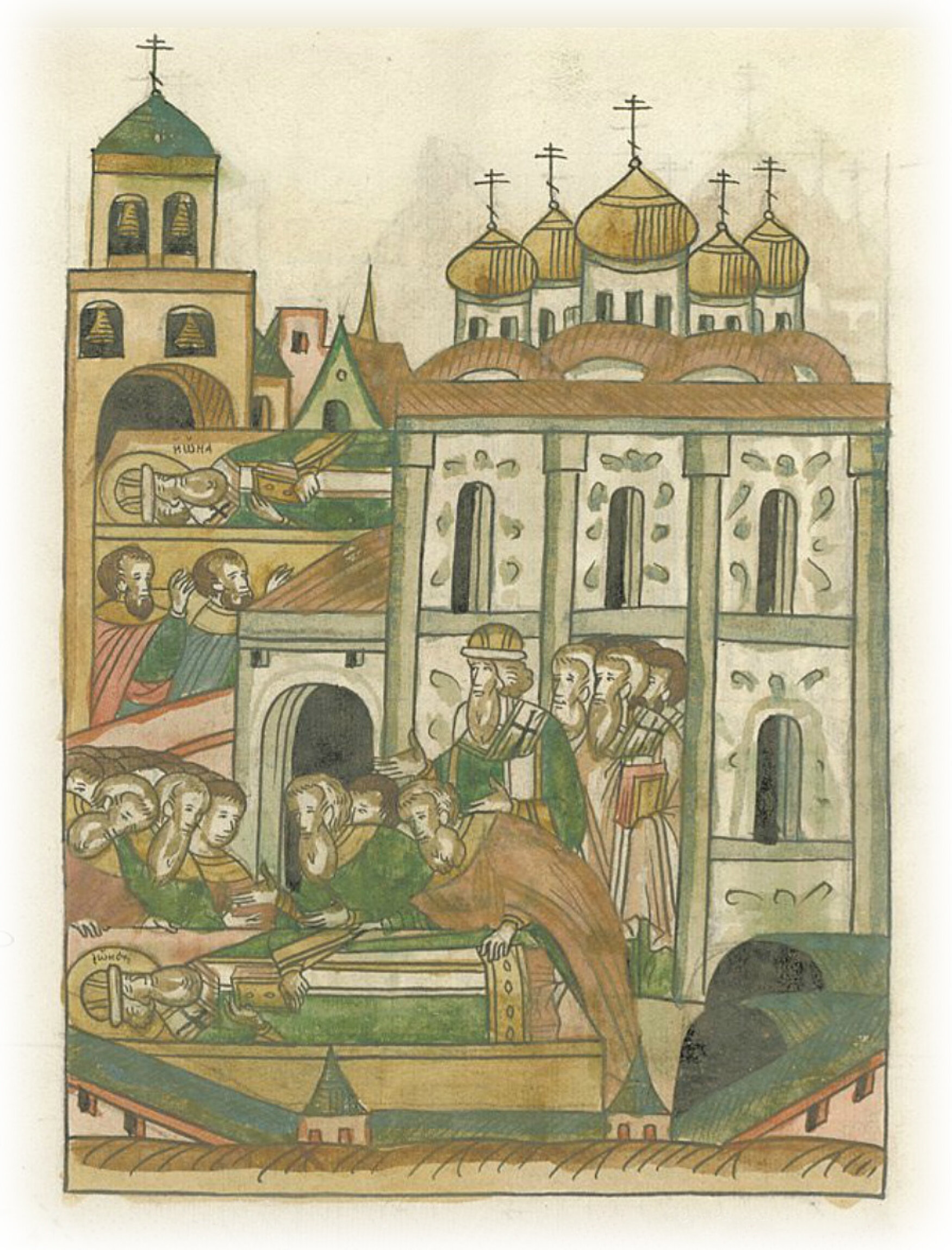 Перенесение в новую церковь мощей преосвященных митрополитов Киприана, Фотия и Ионы чудотворца, и мощей князя Юрия Даниловича.