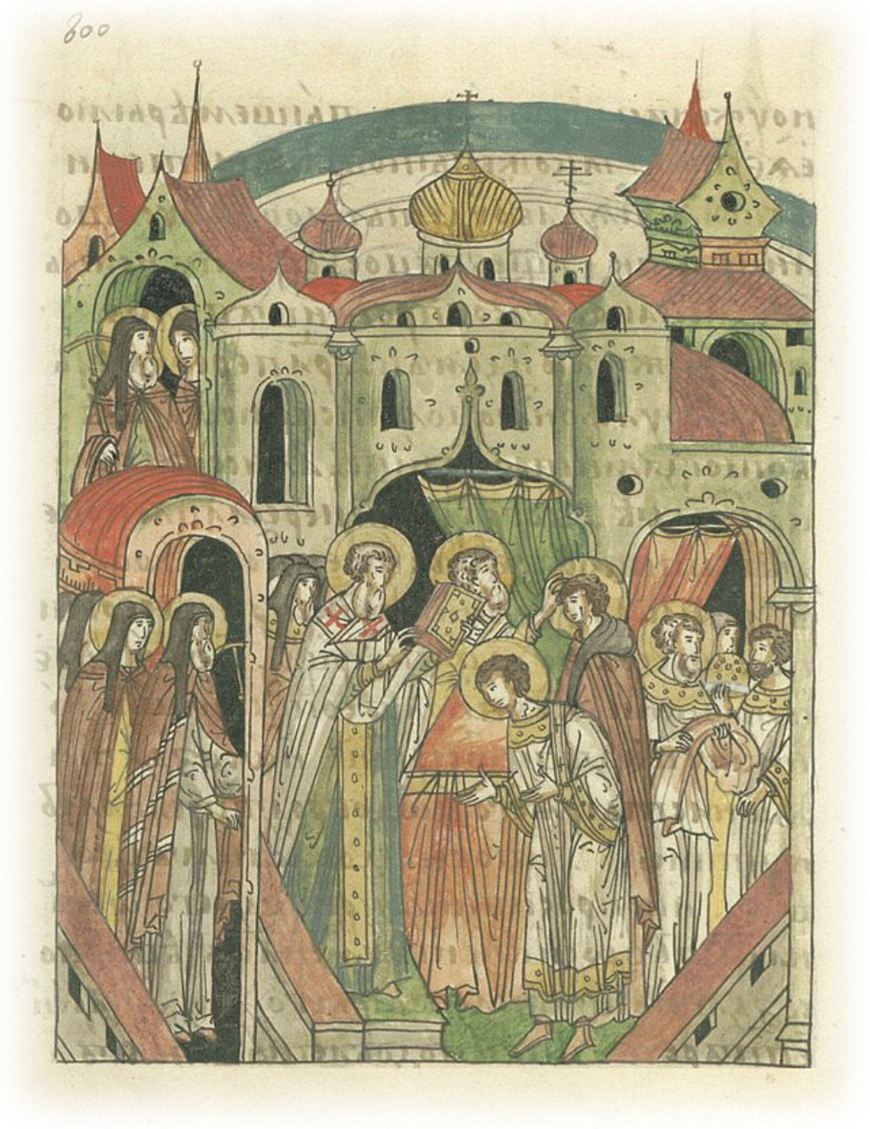 Повесть о преподобном Сергии Радонежском. Волынский епископ Афанасий ставит Сергия в чтецы, затем в поддьяконы.