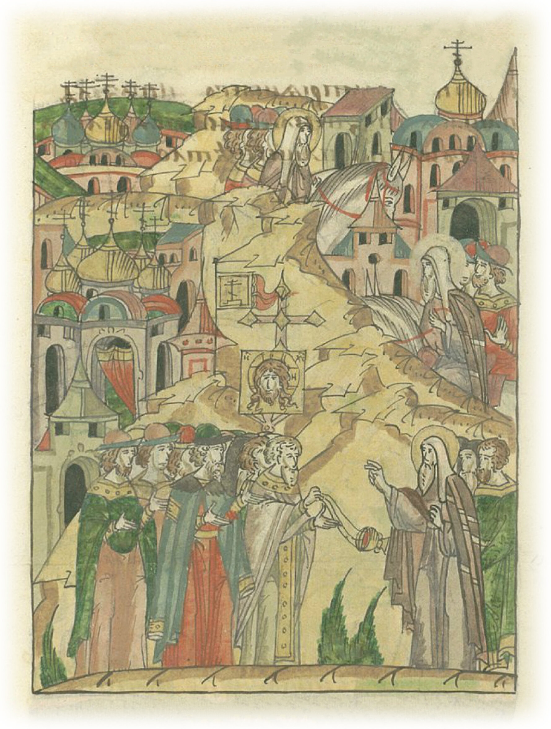 Из Царьграда он пришел в Киев и на Русь в 6918 (1410) году месяца сентября в 1 день, а из Киева – в Москву месяца апреля в самый день Христова Воскресения. И встретили его с крестами священный собор и сам великий князь Василий Дмитриевич далеко за пределами города с князьями и боярами, со множеством народа, с большой радостью и весельем, приняли его с почестями и верой. И возрадовалась, и возвеселилась вся земля, торжествовали все.