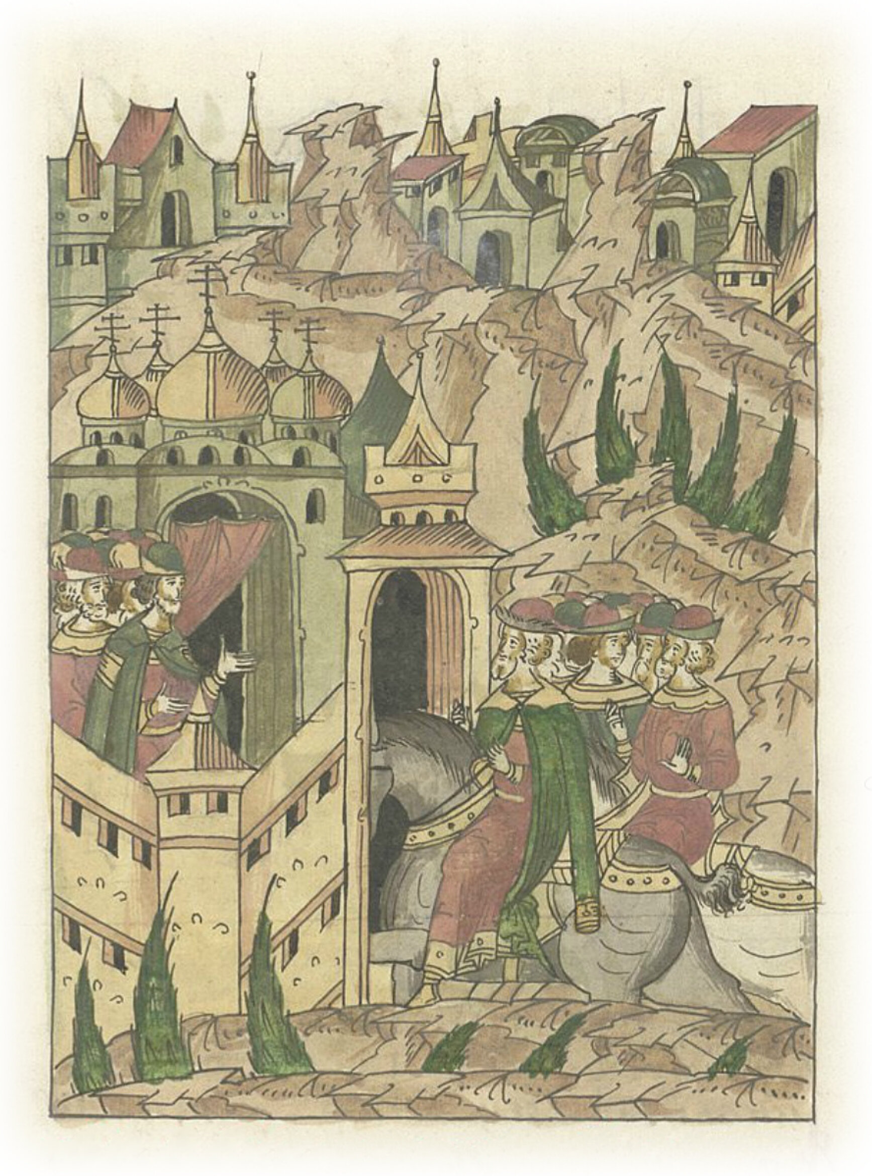 Ругодивские посадники Яким и Захар приезжают в Москву. Воеводы царя Ивана Васильевича Алексей Адашев и Иван Михайлов сообщают им, что государь пожалует их, если сдадут его воеводам помимо Ругодива Вышгород.