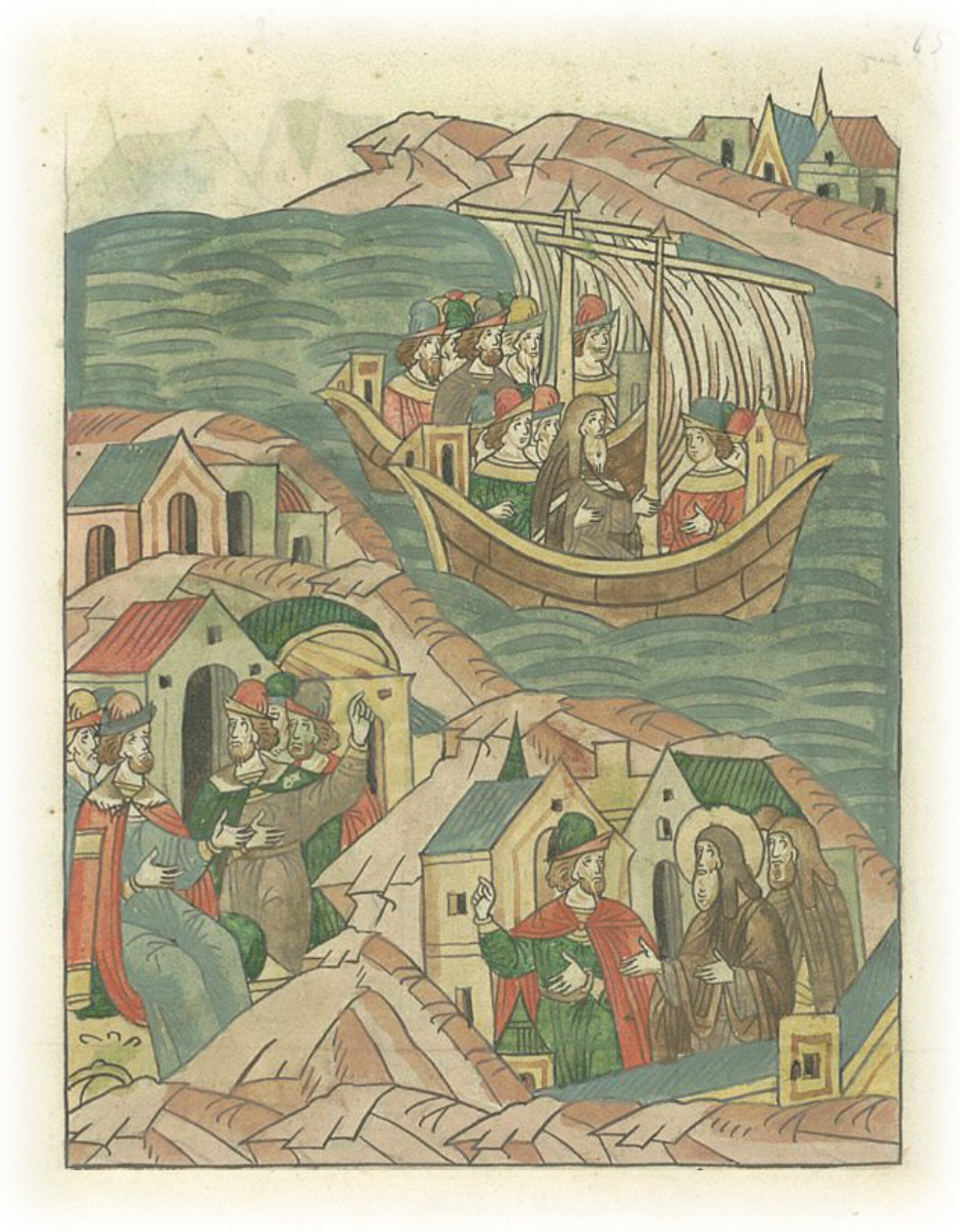 Суздальский епископ Дионисий, нарушив данное великому князю Дмитрию Ивановичу слово, отплывает из Нижнего Новгорода в Царьград, предав своего поручителя, преподобного игумена Сергия Радонежского.
