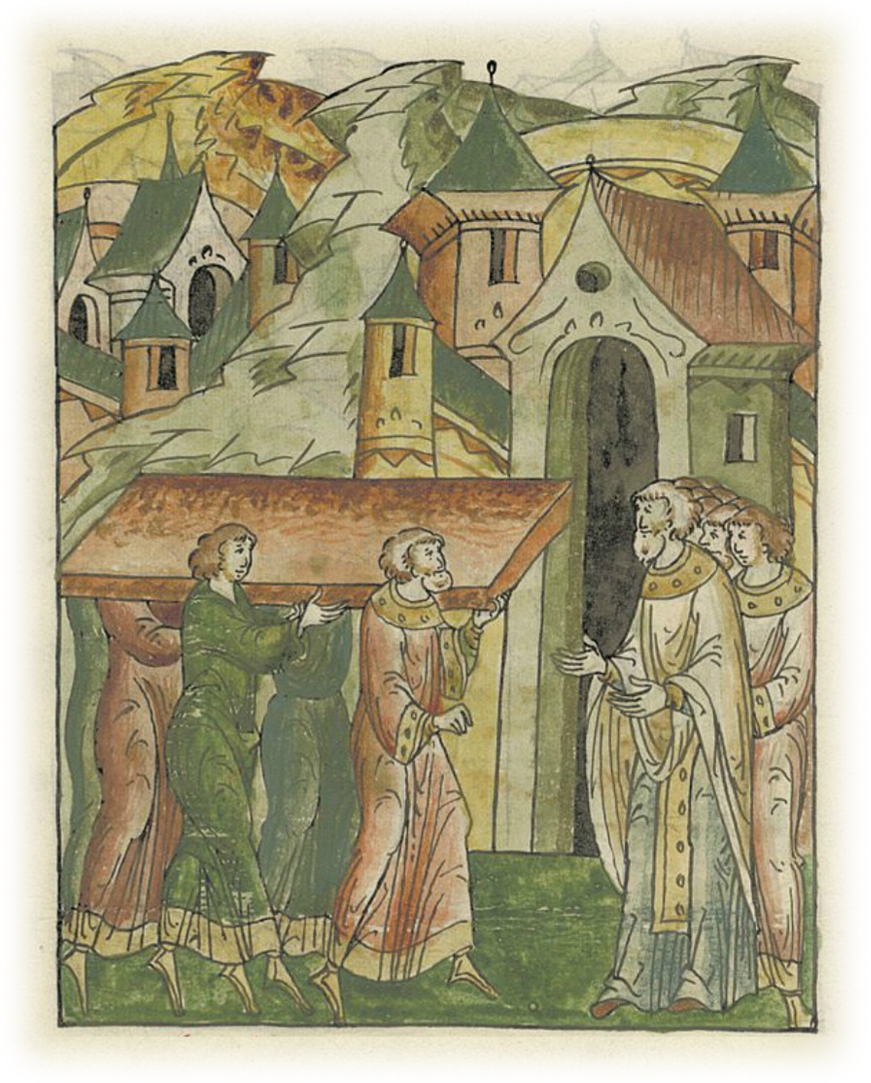 О доске от гроба святого Дмитрия. В ту же зиму принесена была доска из Солуни от гроба святого Дмитрия месяца января в 10 день.