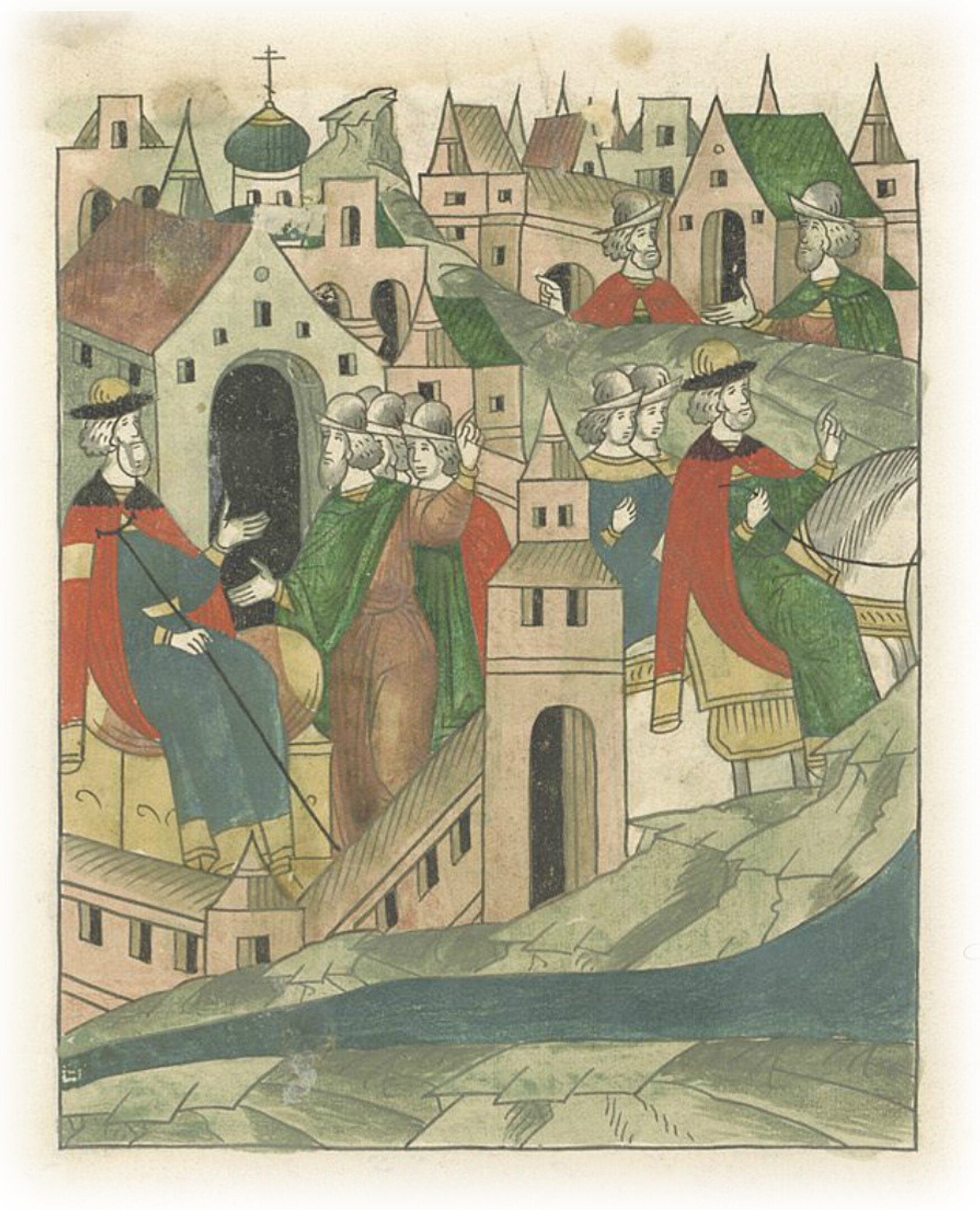 Ругодивские посадники Яким и Захар приезжают в Москву. Воеводы царя Ивана Васильевича Алексей Адашев и Иван Михайлов сообщают им, что государь пожалует их, если сдадут его воеводам помимо Ругодива Вышгород.