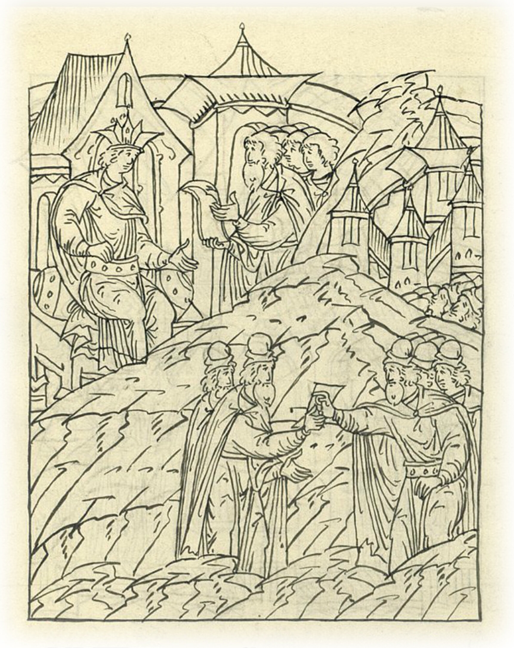 Ругодивские посадники Яким и Захар приезжают в Москву. Воеводы царя Ивана Васильевича Алексей Адашев и Иван Михайлов сообщают им, что государь пожалует их, если сдадут его воеводам помимо Ругодива Вышгород.