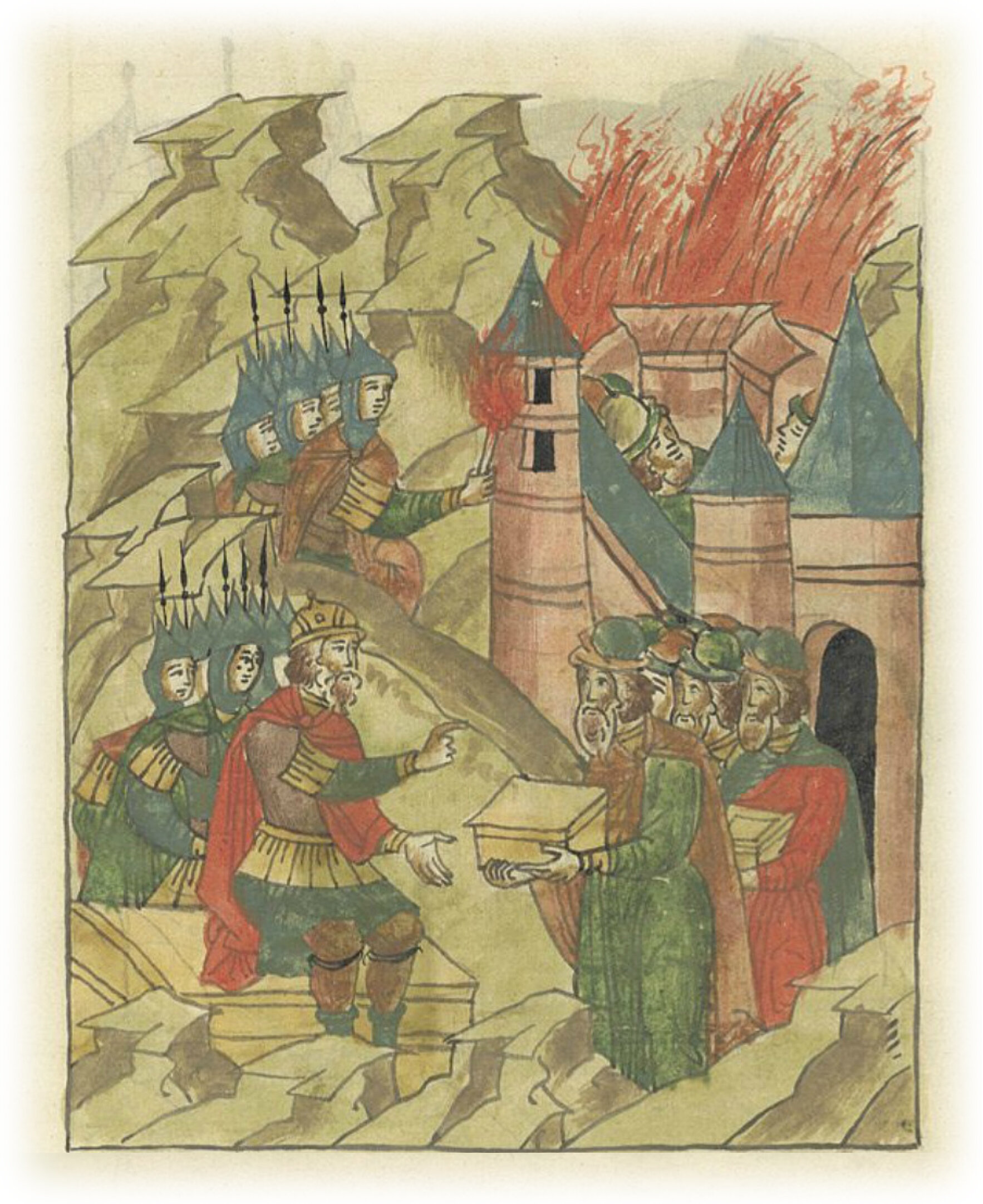 И повелел князь великий Всеволод всем людям выйти из города со всем легким добром, а со всем оставшимся их добром город зажег и посад весь,
