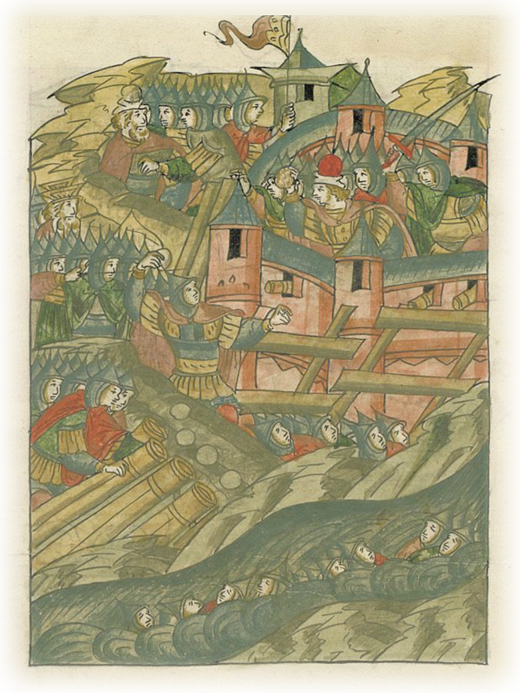 Языки говорят воеводам царя Ивана Васильевича, что магистр окопался большим рвом вокруг города Рындола, бьет из пушек и пищалей и приступает к Рындолу.