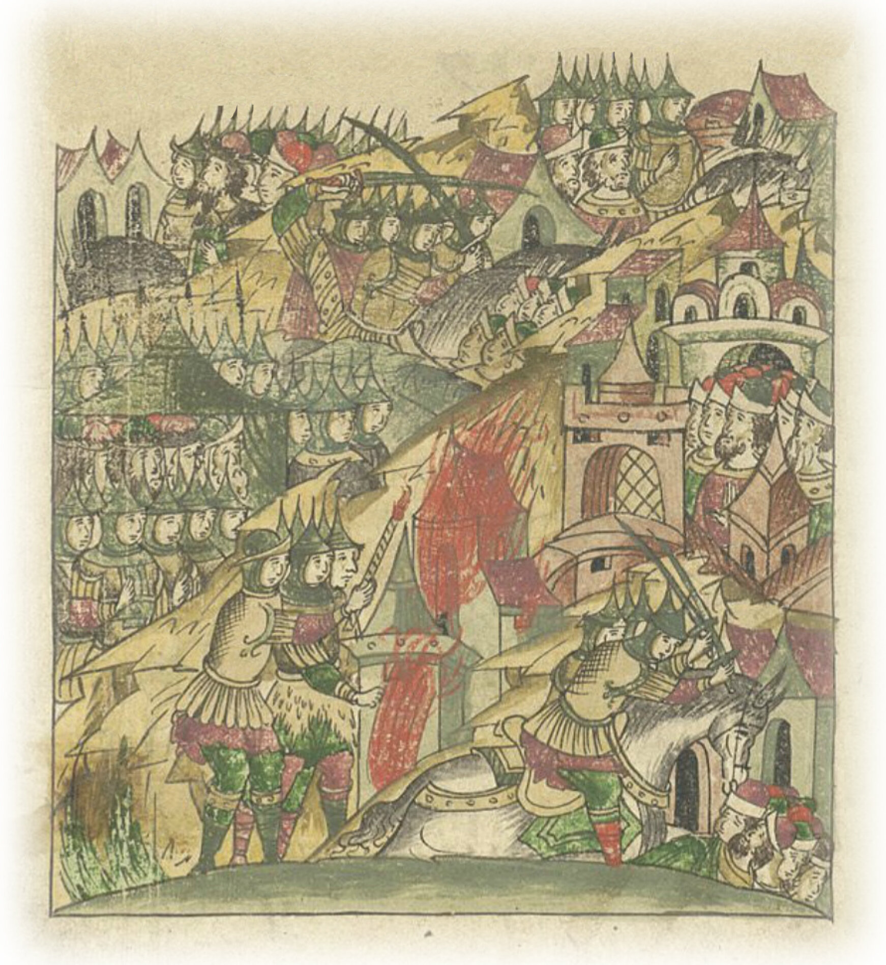 И так из Переяславля по цареву повелению пошел князь Иван Коротополый с Тавлубием и с прочими татарами, и князь великий Иван Данилович послал также свою рать с ними к Смоленску. Воеводами были: Александр Иванов, Федор Акинфович. Также и иные князья по повелению цареву пошли с татарами к Смоленску: князь Константин Борисович Ростовский, князь Иоанн Ярославич Юрьевский, князь Иван Дрютский, Федор Фоминский с баскаками и Мордовские князья с мордвой. И, подойдя к Смоленску, пожгли посады, волости и села пограбили и пожгли, и под городом стояли несколько дней. И оттуда татары пошли в Орду с большим богатством и с пленными, а русские князья возвратились восвояси здравыми и невредимыми.