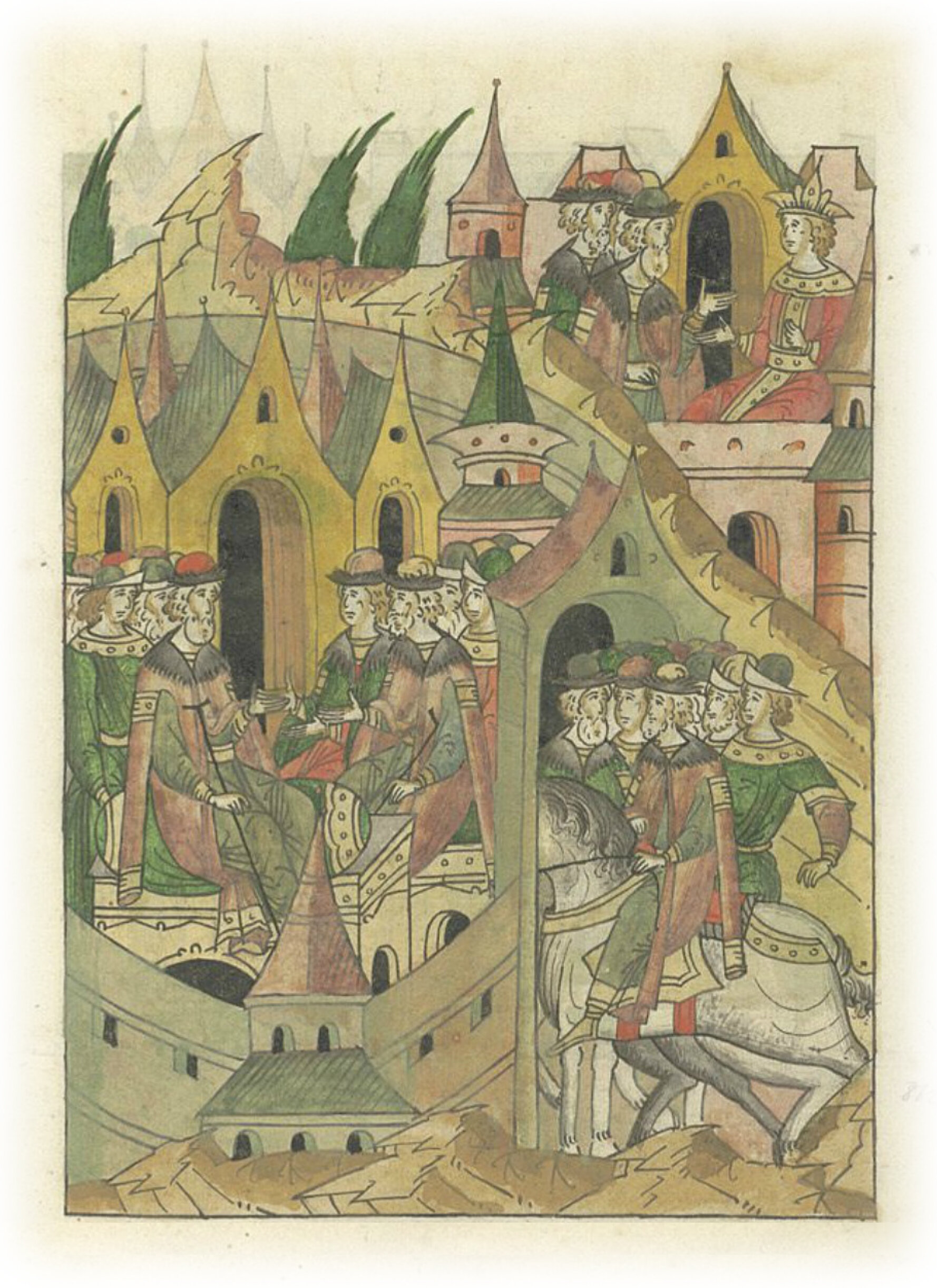Ругодивские посадники Яким и Захар приезжают в Москву. Воеводы царя Ивана Васильевича Алексей Адашев и Иван Михайлов сообщают им, что государь пожалует их, если сдадут его воеводам помимо Ругодива Вышгород.