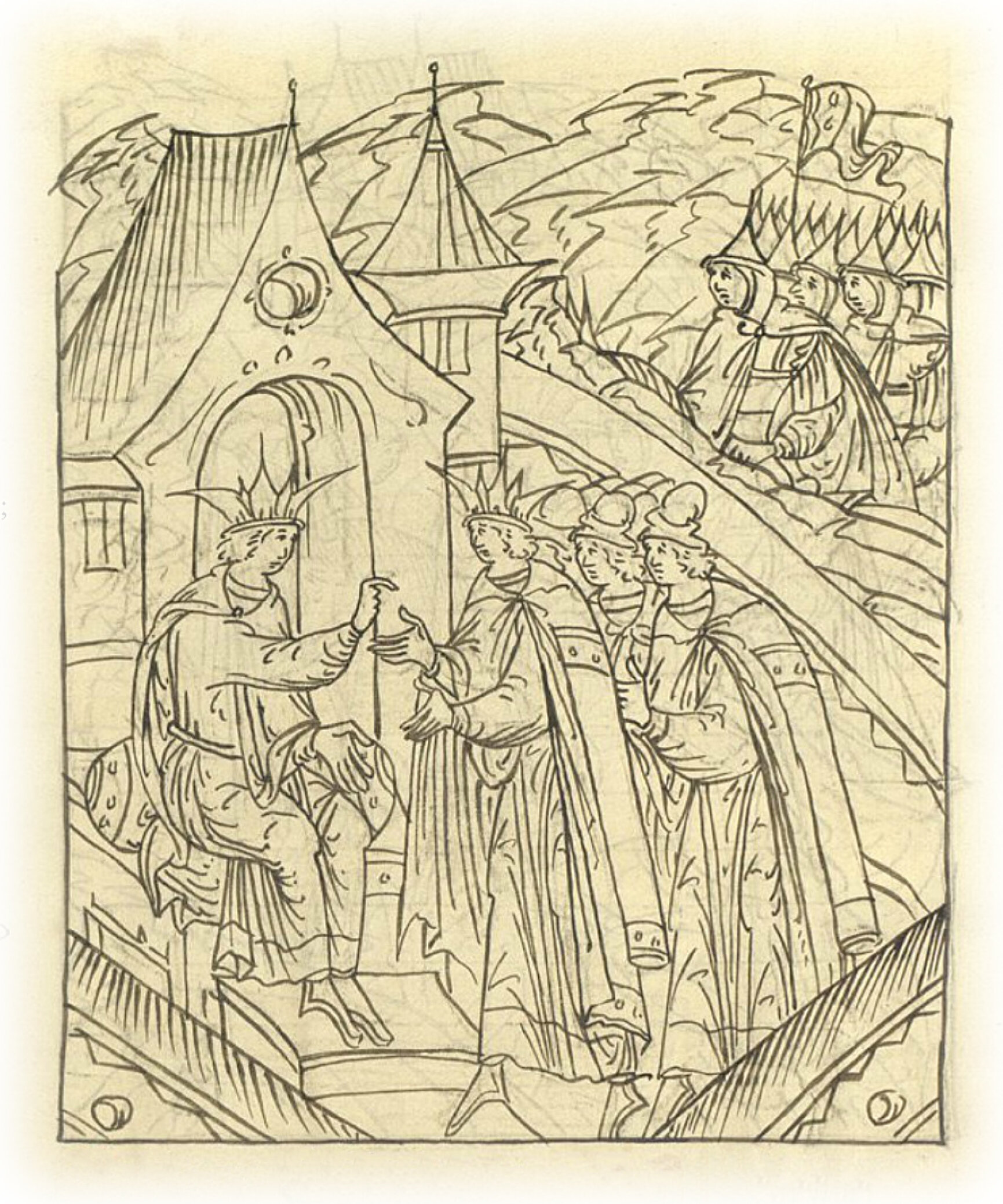 Ругодивские посадники Яким и Захар приезжают в Москву. Воеводы царя Ивана Васильевича Алексей Адашев и Иван Михайлов сообщают им, что государь пожалует их, если сдадут его воеводам помимо Ругодива Вышгород.