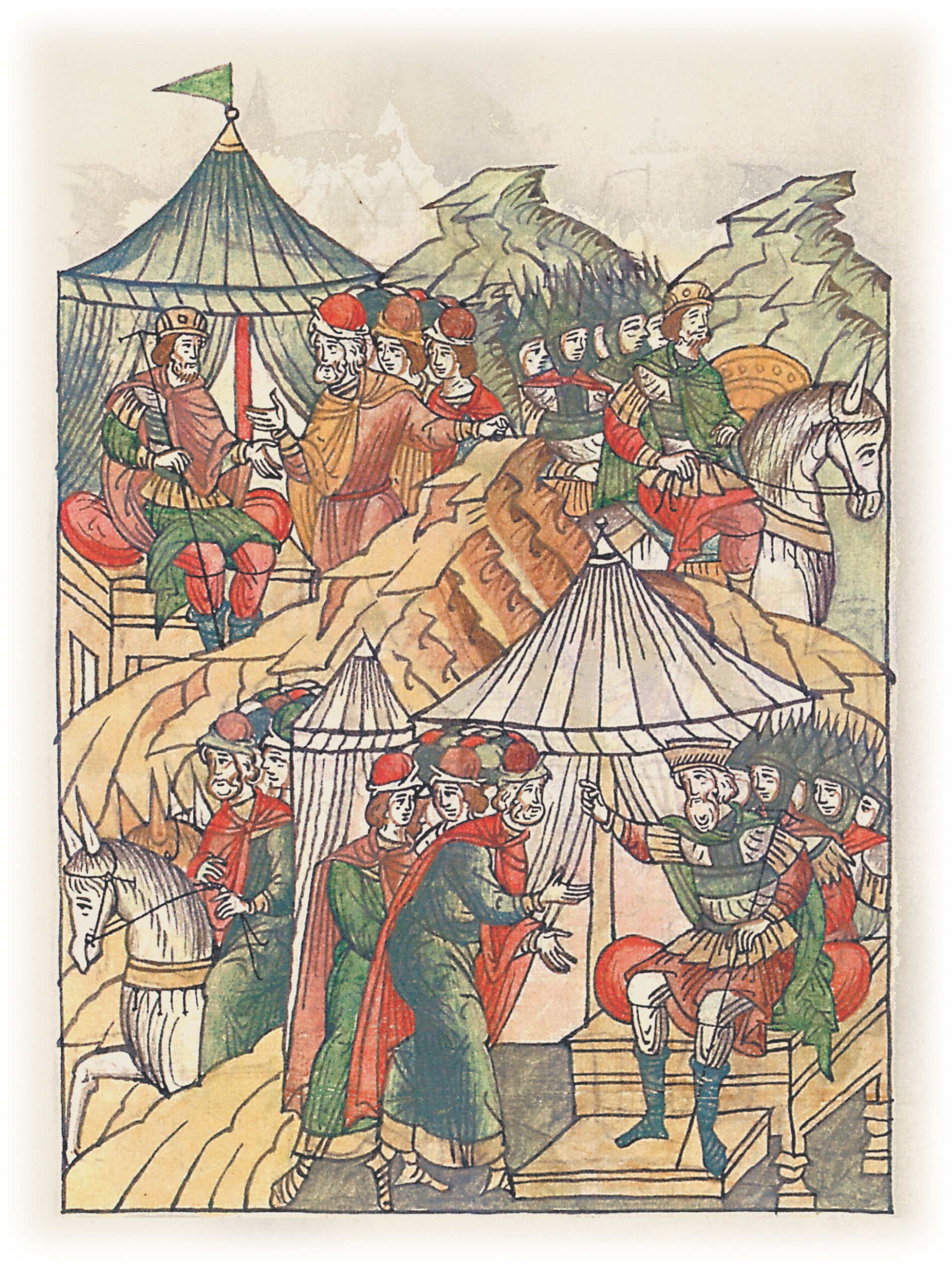 И тут пришло к нему от короля посольство в сто человек, и сказали Изяславу: «Зять тебе, король, кланяется и так тебе приказал: здесь стою уже пятый день, тебя ожидая, и ты иди скорее». Услышал это Изяслав и с великим усердием пошел.