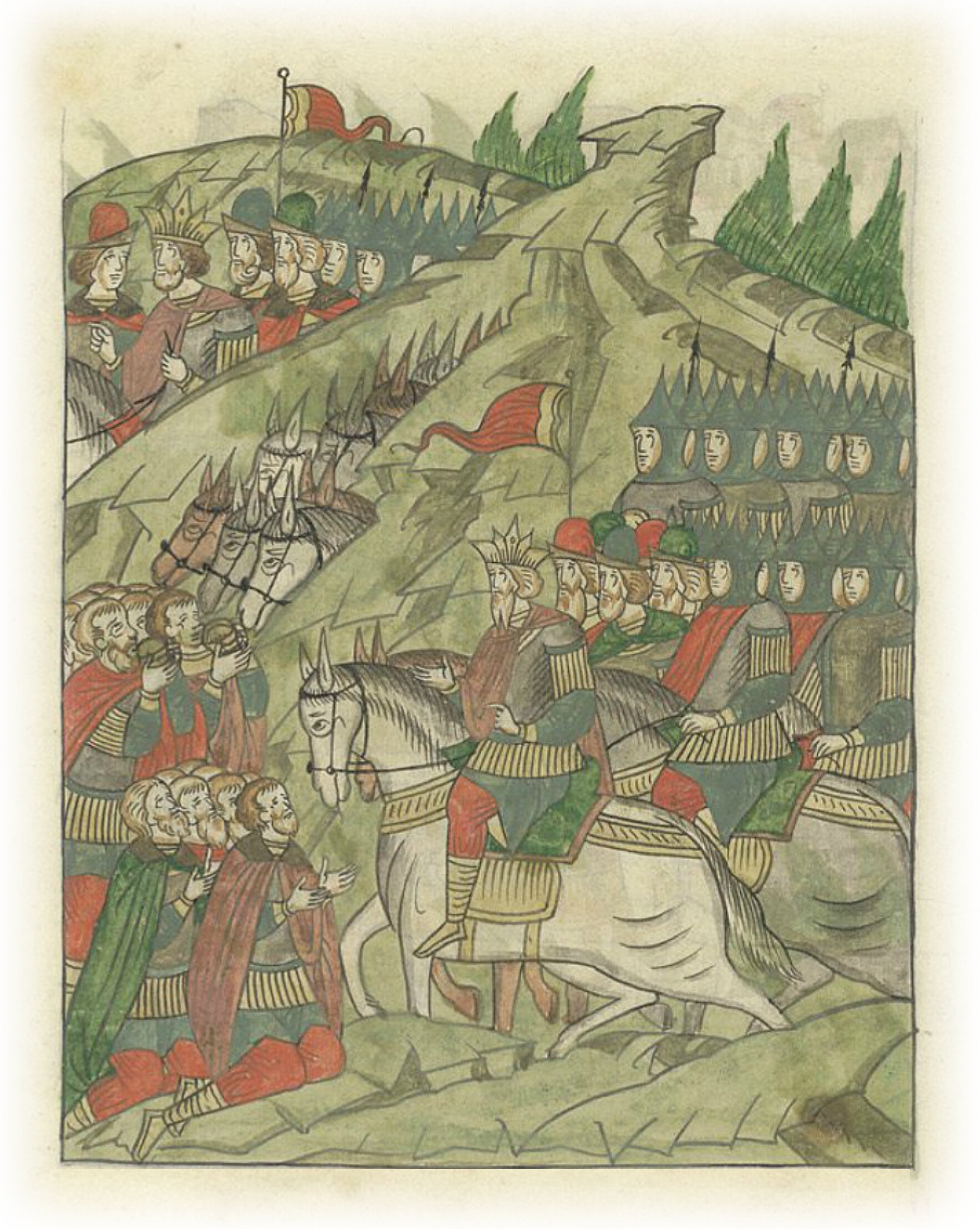 Языки говорят воеводам царя Ивана Васильевича, что магистр окопался большим рвом вокруг города Рындола, бьет из пушек и пищалей и приступает к Рындолу.