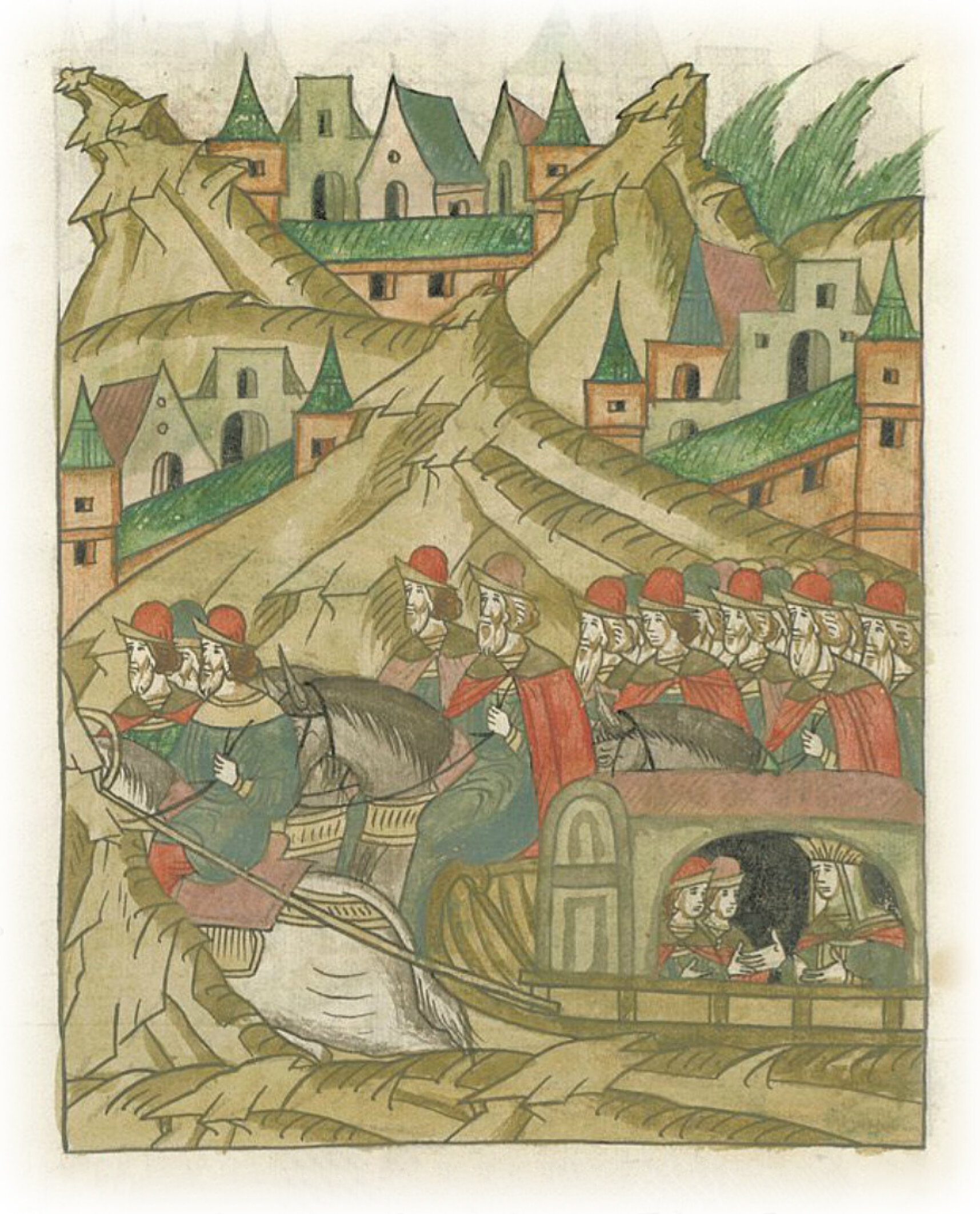 Князь Андрей Васильевич с княгиней и детьми идут с князем Борисом из Углича к Ржеву.