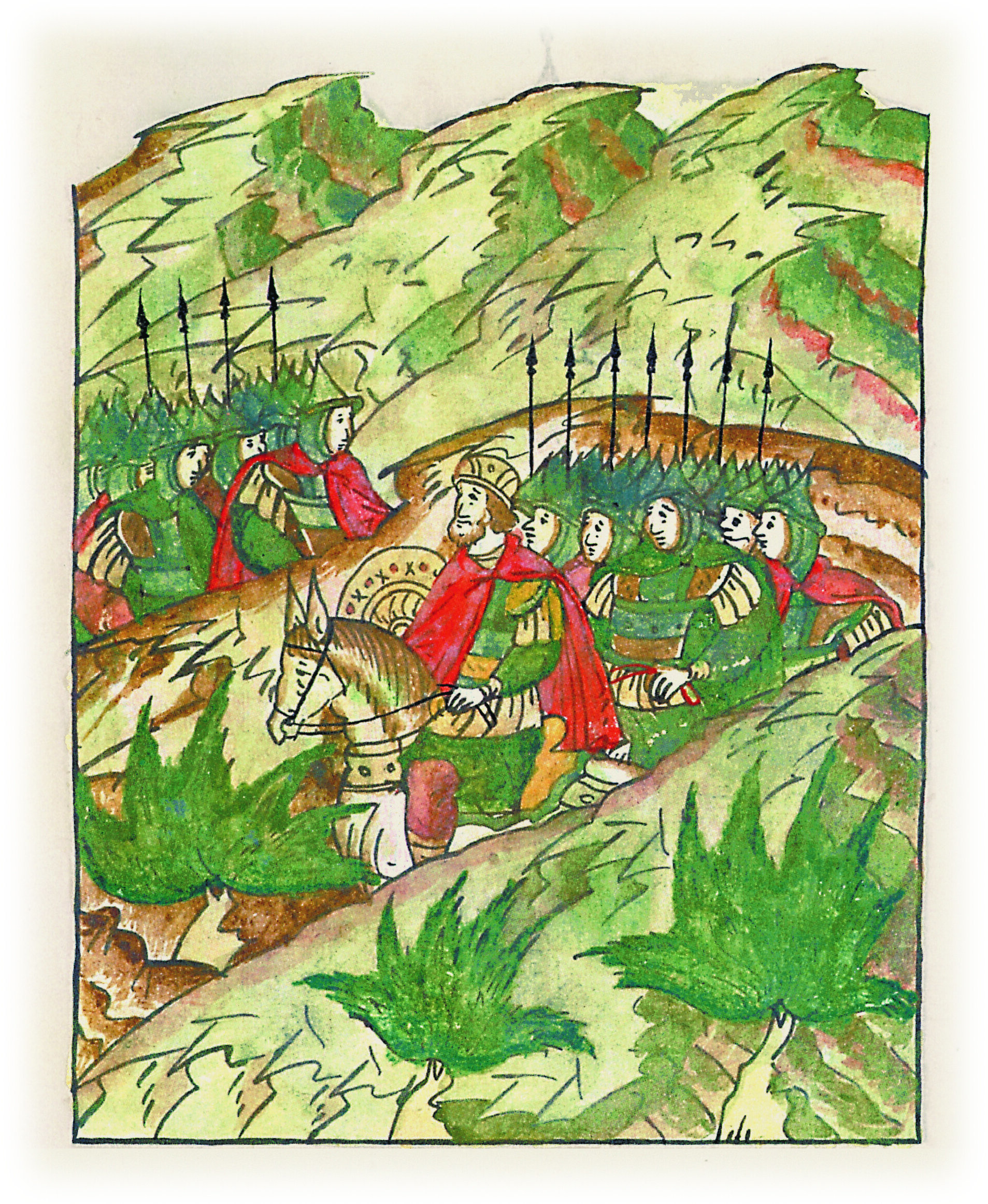 Воеводы царя Ивана Васильевича, разделившись, идут в погоню за царем Емгурчеем.