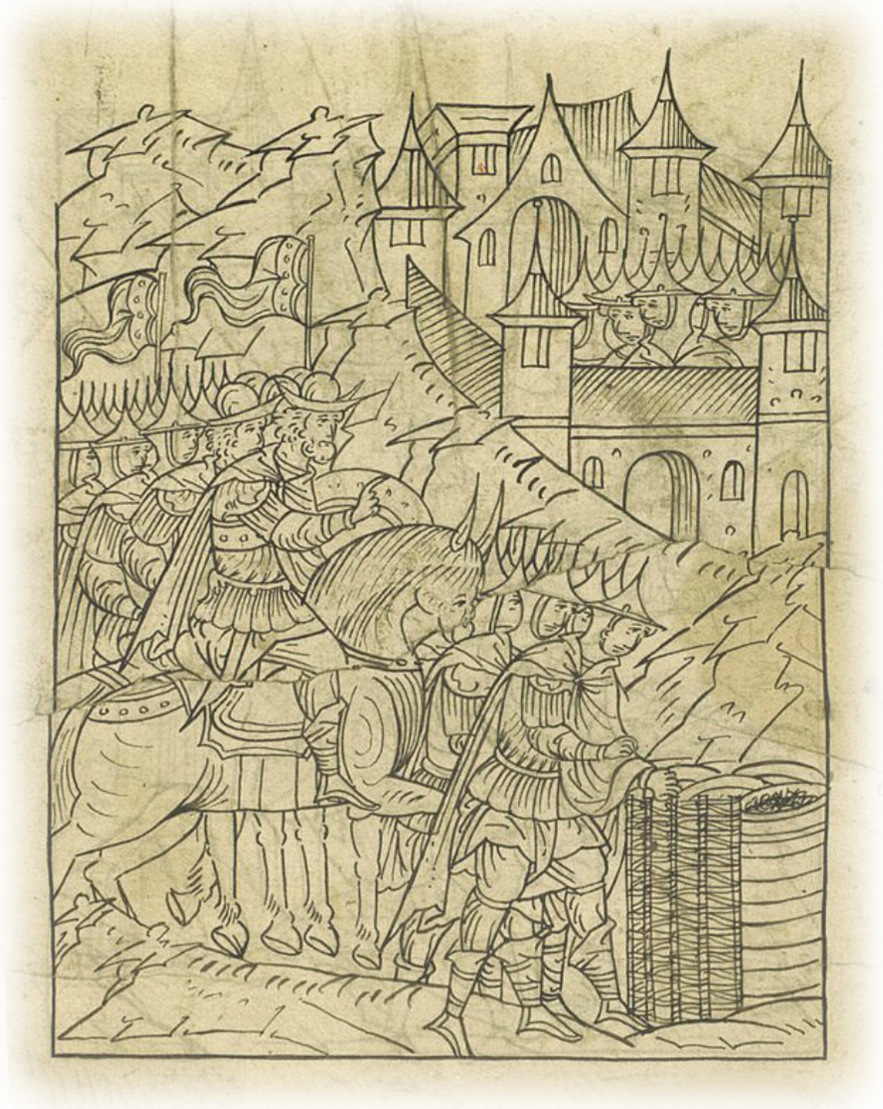 Языки говорят воеводам царя Ивана Васильевича, что магистр окопался большим рвом вокруг города Рындола, бьет из пушек и пищалей и приступает к Рындолу.
