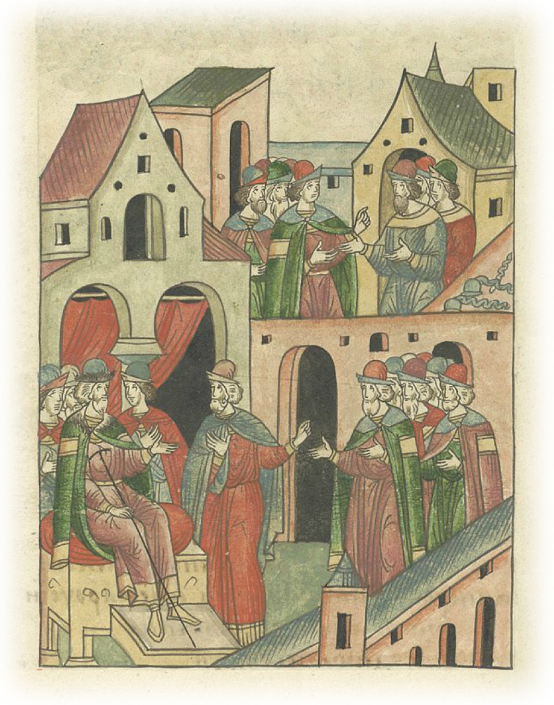 Ругодивские посадники Яким и Захар приезжают в Москву. Воеводы царя Ивана Васильевича Алексей Адашев и Иван Михайлов сообщают им, что государь пожалует их, если сдадут его воеводам помимо Ругодива Вышгород.