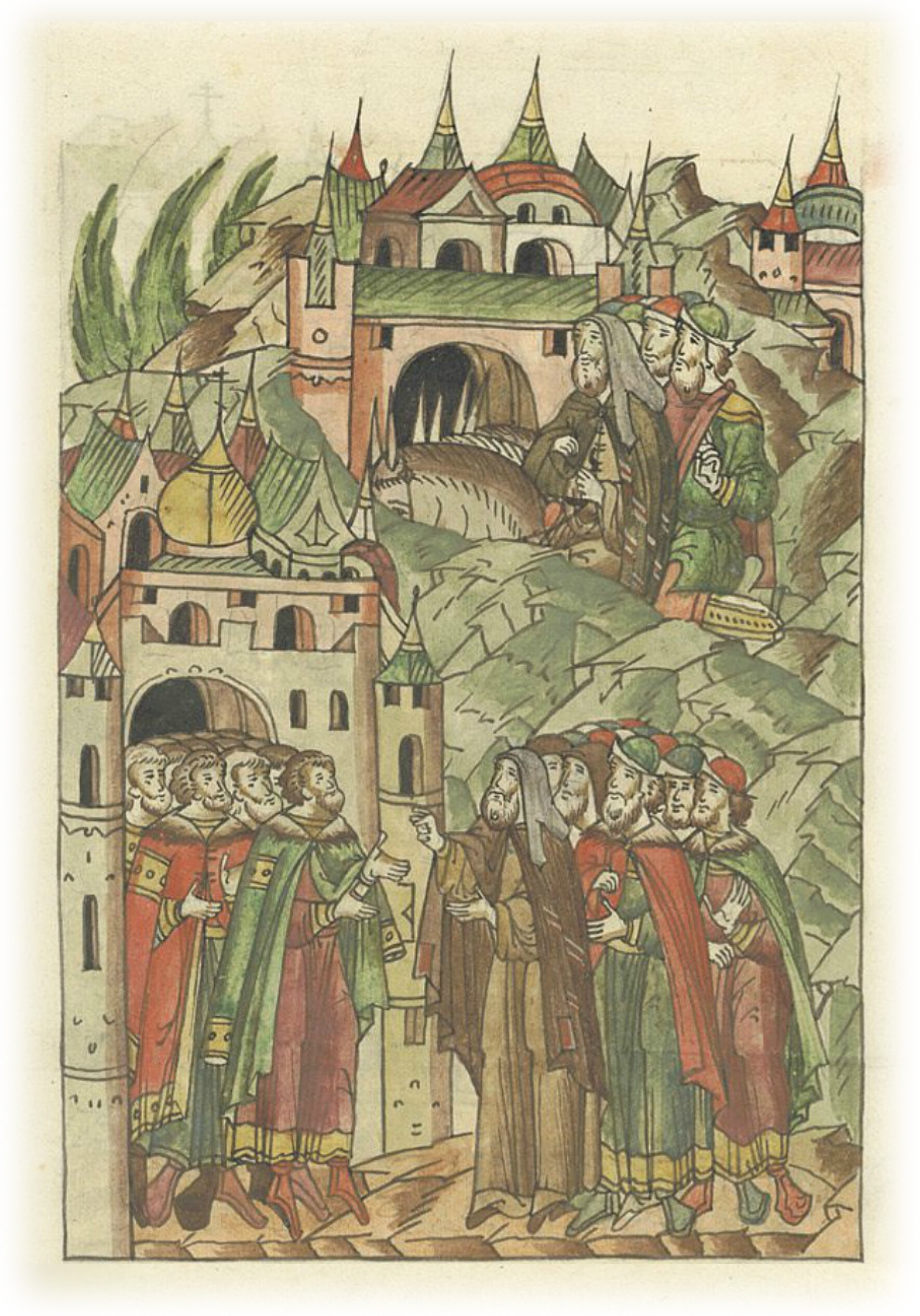 Ругодивские посадники Яким и Захар приезжают в Москву. Воеводы царя Ивана Васильевича Алексей Адашев и Иван Михайлов сообщают им, что государь пожалует их, если сдадут его воеводам помимо Ругодива Вышгород.