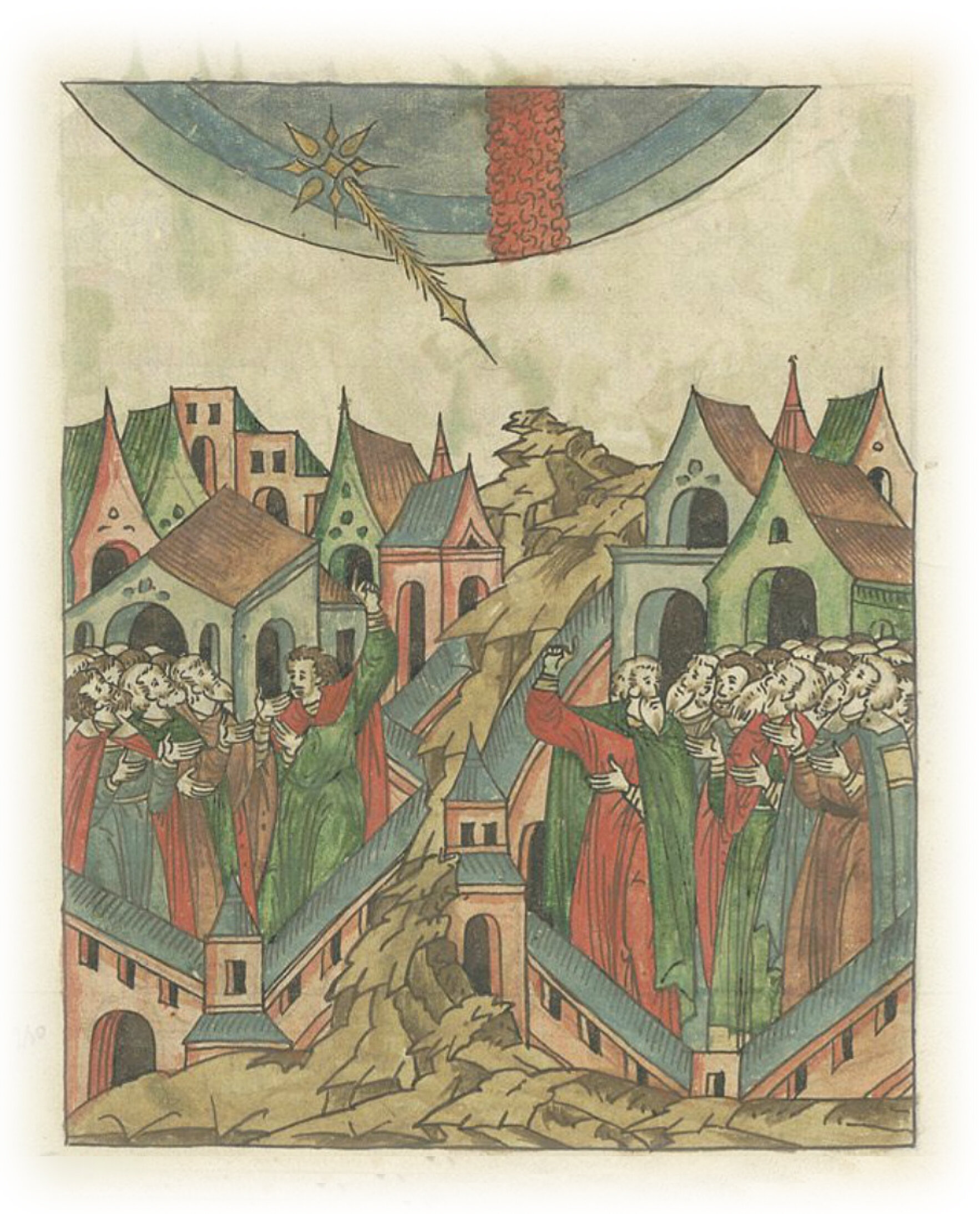 Той же зимой и той же весной являлись некие знамения на небесах на востоке перед ранними зарями: словно столп огненный, и звезда, похожая на копье, словно хвостатая. Сие же предвещало на Русскую землю злое пришествие Тахтамышево и горькое нашествие нечестивых.