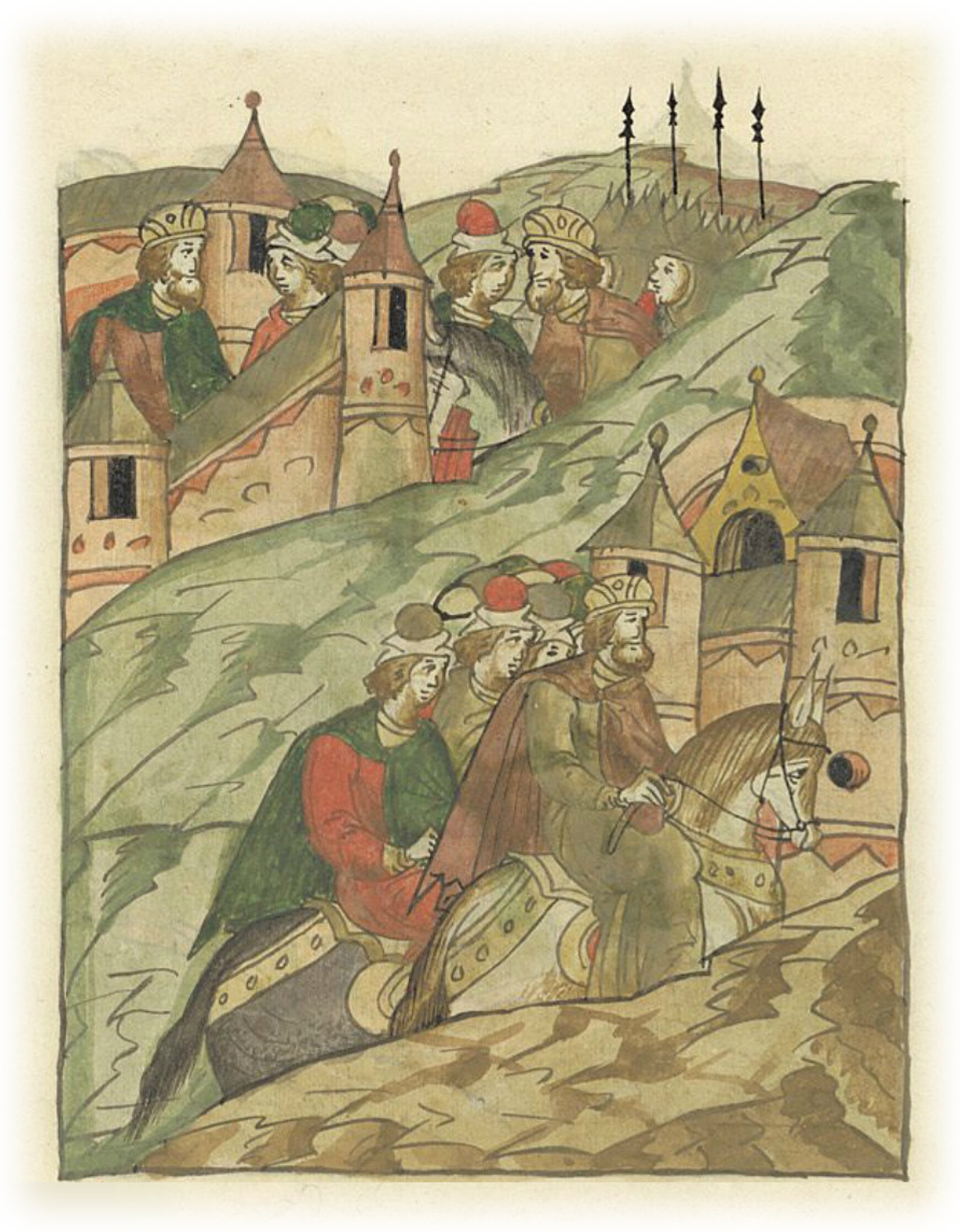 Ругодивские посадники Яким и Захар приезжают в Москву. Воеводы царя Ивана Васильевича Алексей Адашев и Иван Михайлов сообщают им, что государь пожалует их, если сдадут его воеводам помимо Ругодива Вышгород.