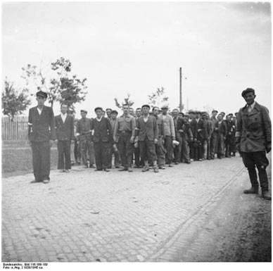 Польские добровольцы перед сборным пунктом вермахта.