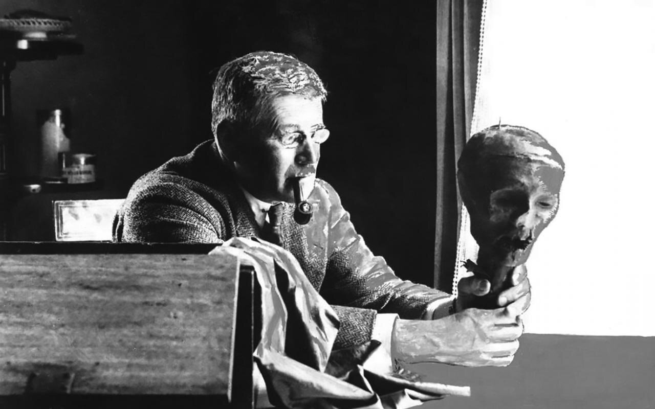 Гораций Уилкинсон, викарий Суффолка, c забальзамированной головой Оливера Кромвеля из своей коллекции. 1949 год.