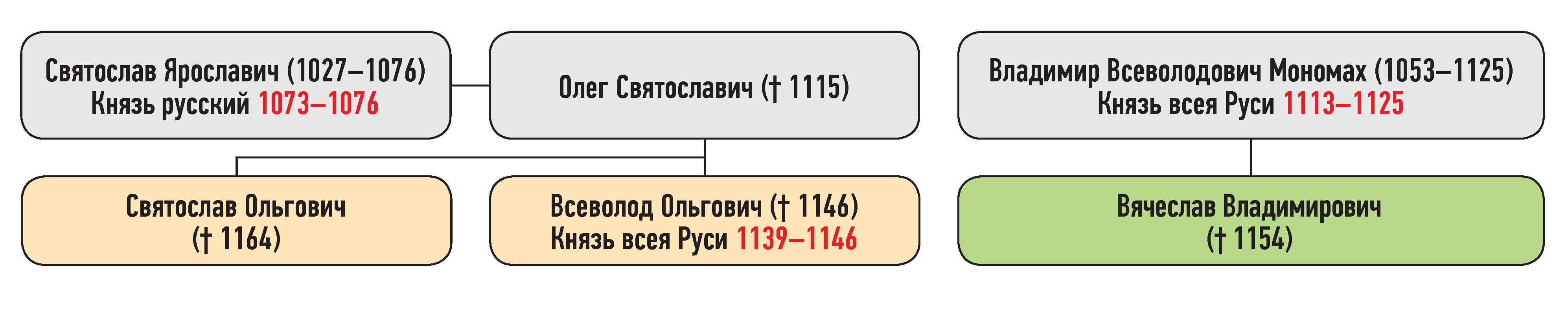 Генеалогическая схема к усобице великого князя Вячеслава Владимировича и Всеволода Ольговича весной 1139 г.