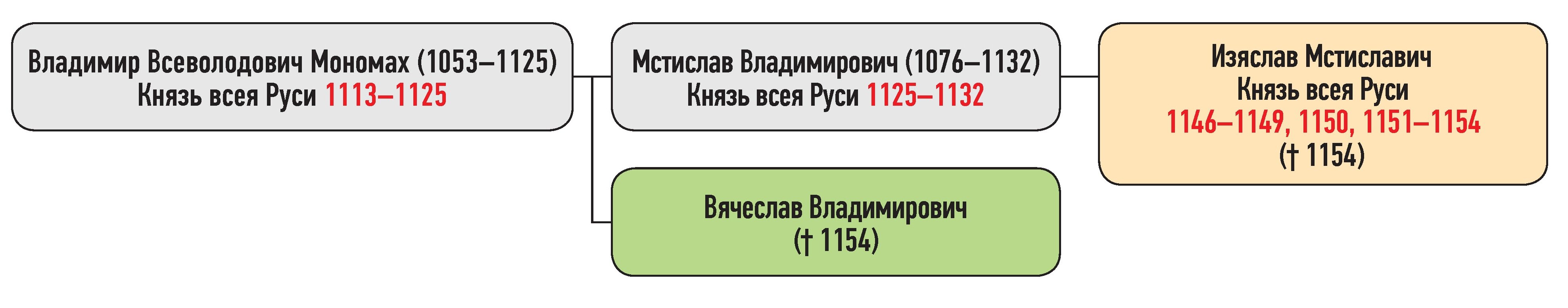 Вячеслав Владимирович — сын Владимира Всеволодовича Мономаха, Изяслав Мстиславич — сын Мстислава Владимировича