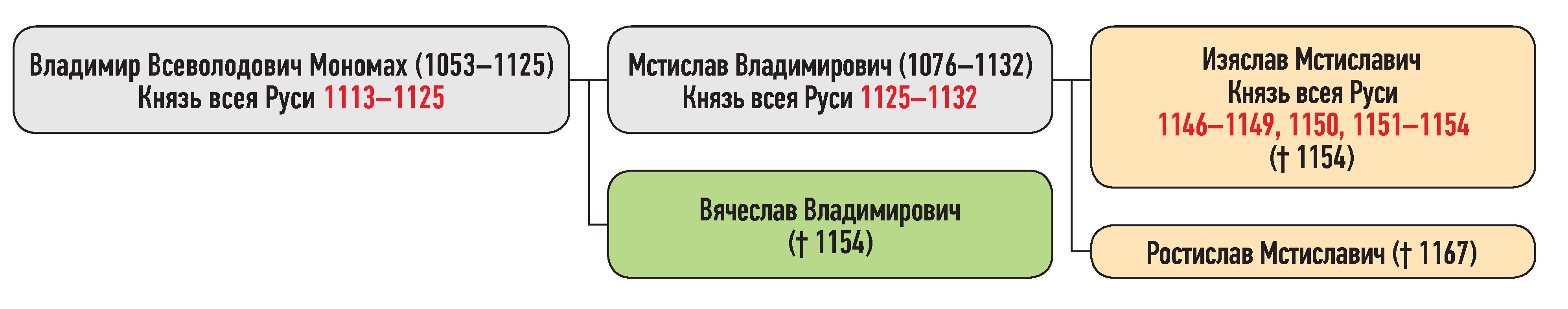 Вячеслав Владимирович — сын Владимира Всеволодовича Мономаха, Изяслав, Ростислав Мстиславичи — сыновья Мстислава Владимировича