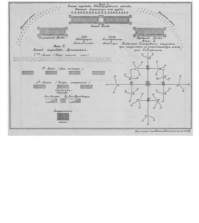 Чертежи боевых порядков в Западной Европе, аравитян и татар в Азии.