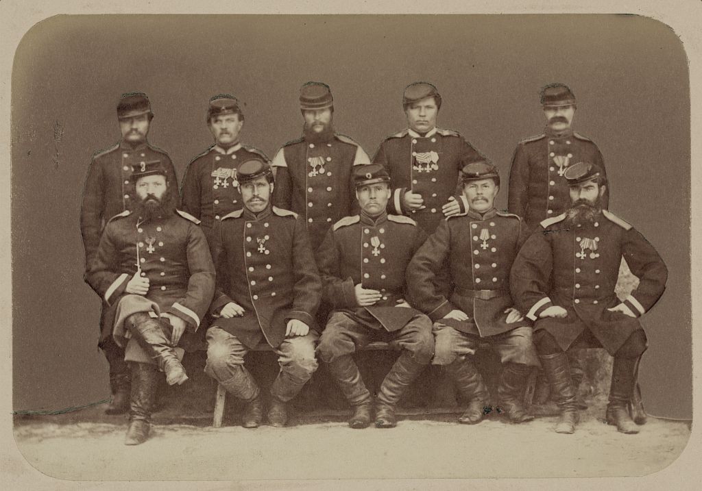 Георгиевские кавалеры, имеющие знаки отличия военного ордена за взятие Ташкента. Фотография 1865 год.