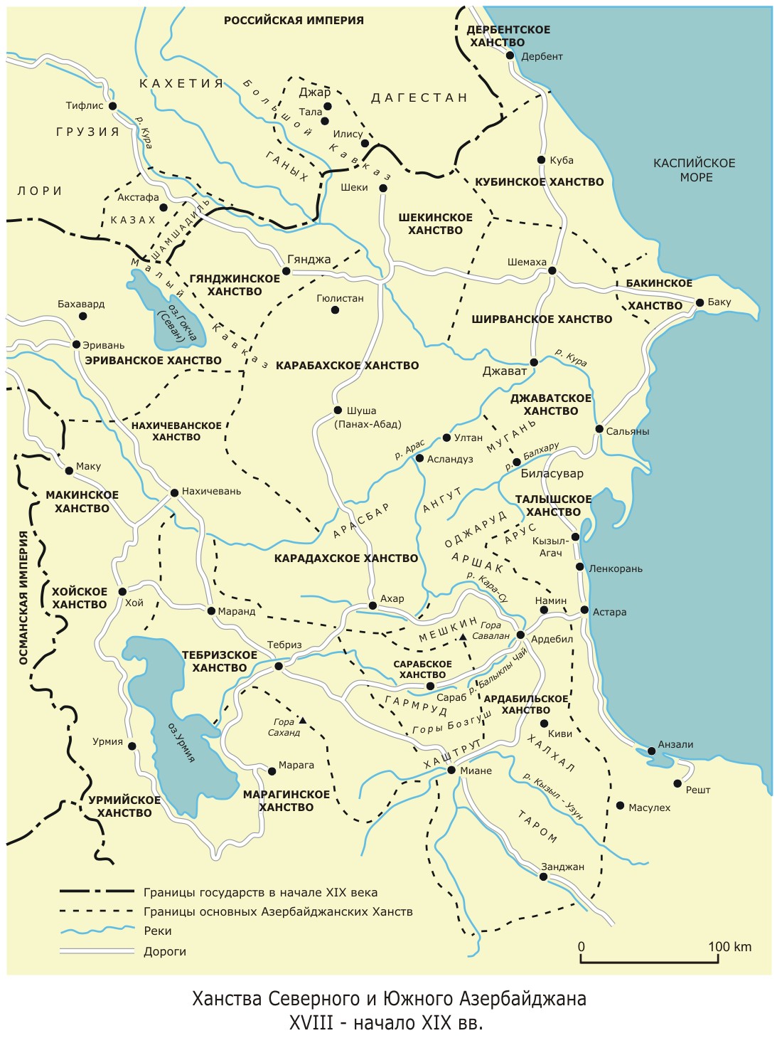 Карта ханств Северного и Южного Азербайджана, XVIII — начало XIX вв.