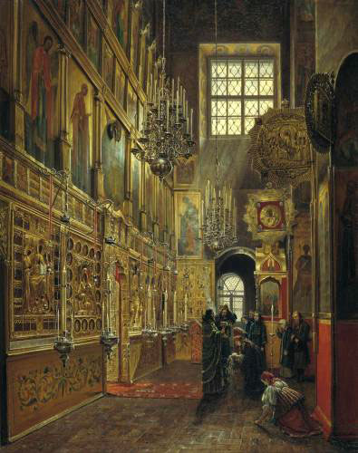 Внутренний вид Алексеевской церкви Чудова монастыря в московском кремле. С.Шустов. 1866 год.