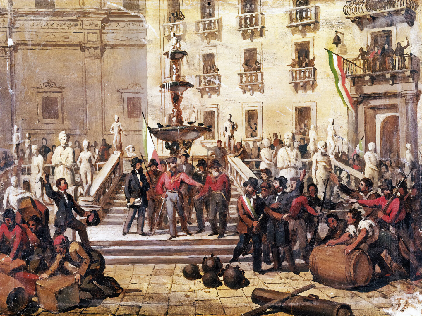 Экспедиция Тысячи. Джузеппе Гарибальди на Пьяцца Претория в Палермо в 1860 г.